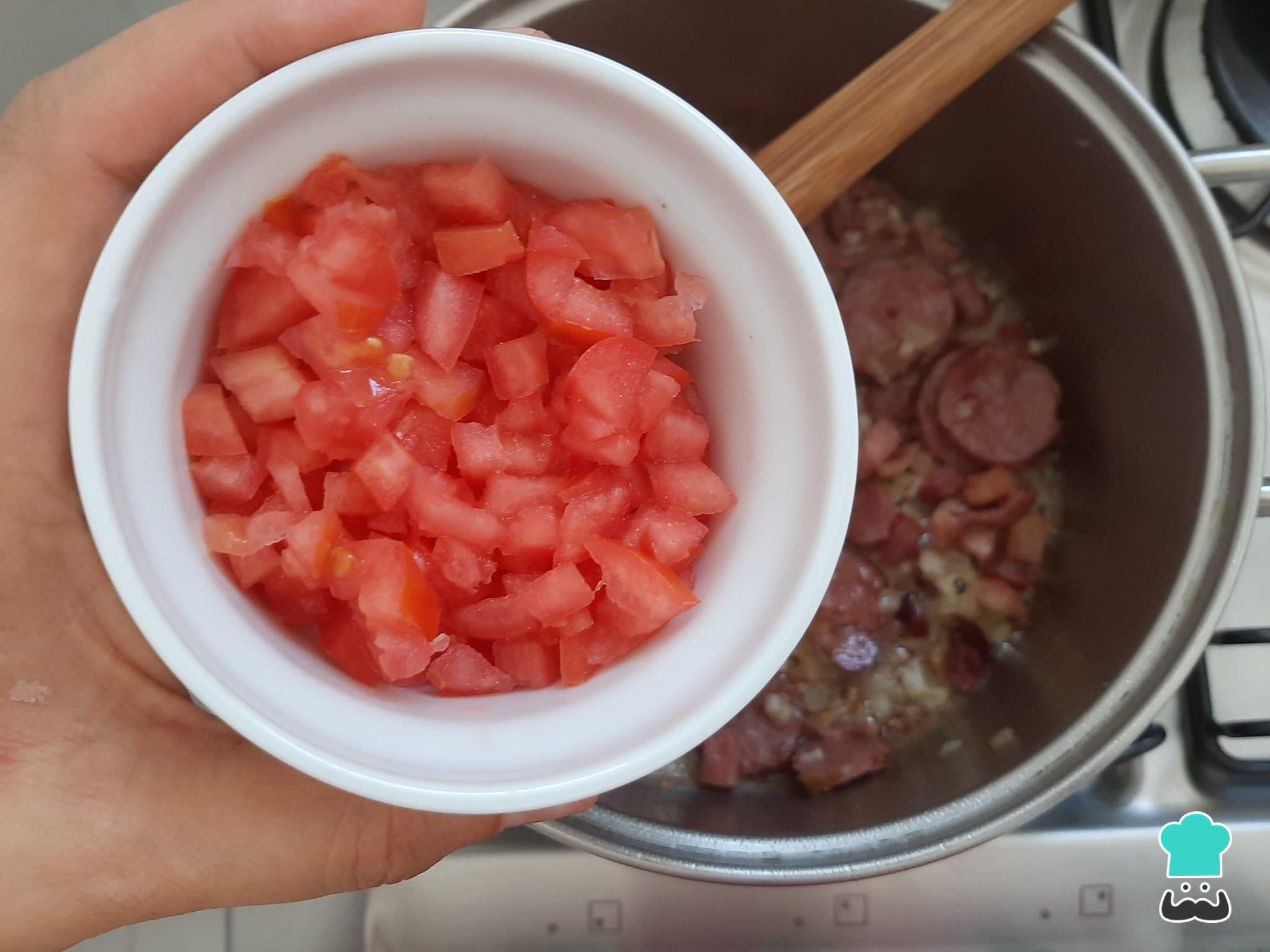 Adicione o tomate picado sem sementes ao refogado anterior.