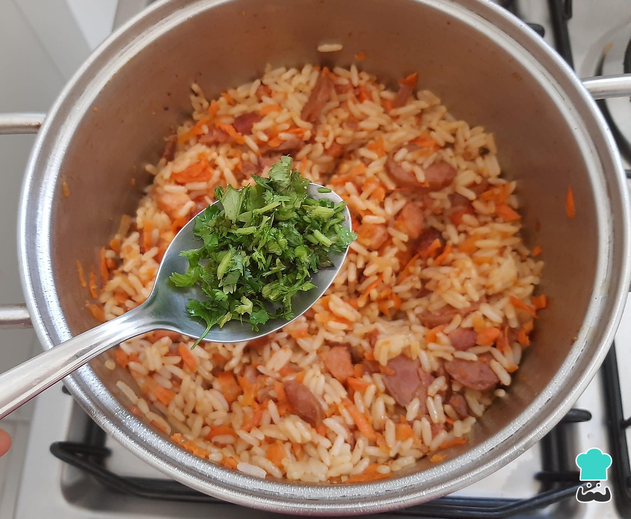 Como fazer Arroz temperado com bacon, calabresa e cenoura: