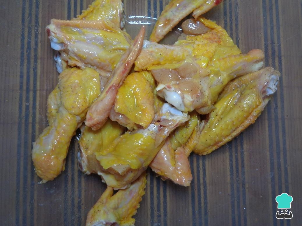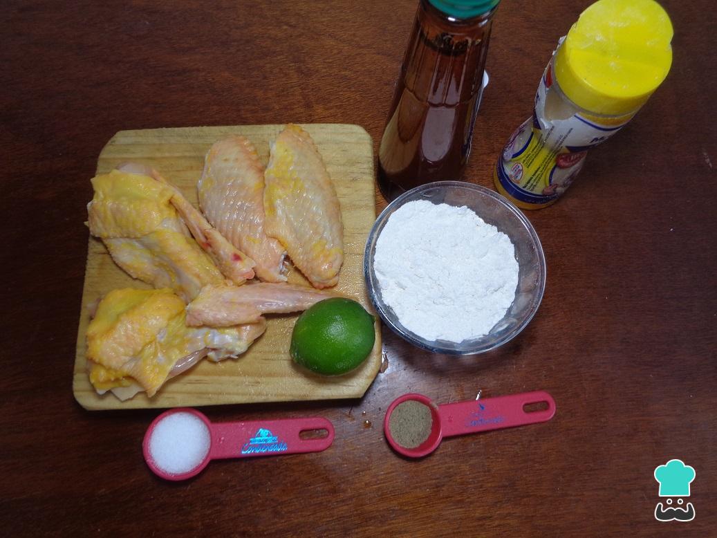 Comece por reunir os ingredientes necessários para o preparo da receita de asinha de frango americana.