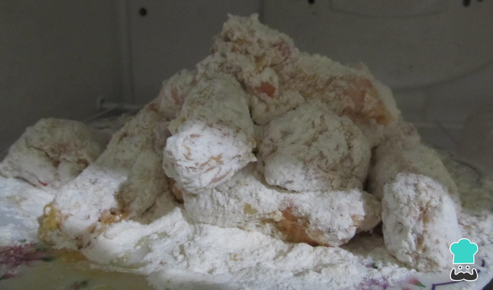 Coloque as asas de frango empanadas na geladeira por 1 hora, assim a carne irá pegar o sabor dos temperos. Após esse tempo, volte a empanar na mistura que sobrou, novamente pressionando para aderir.
