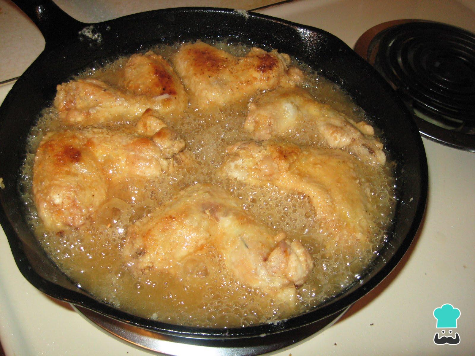 Esquente o óleo numa panela funda, em quantidade suficiente para cobrir as asas. Quando estiver bem quente (a temperatura correta é 190ºC), frite as asas empanadas por 13 minutos, virando de vez em quando.