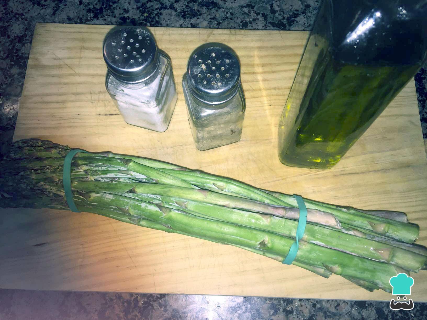O primeiro passo para esta receita de aspargos salteados com azeite é juntar todos os ingredientes necessários.