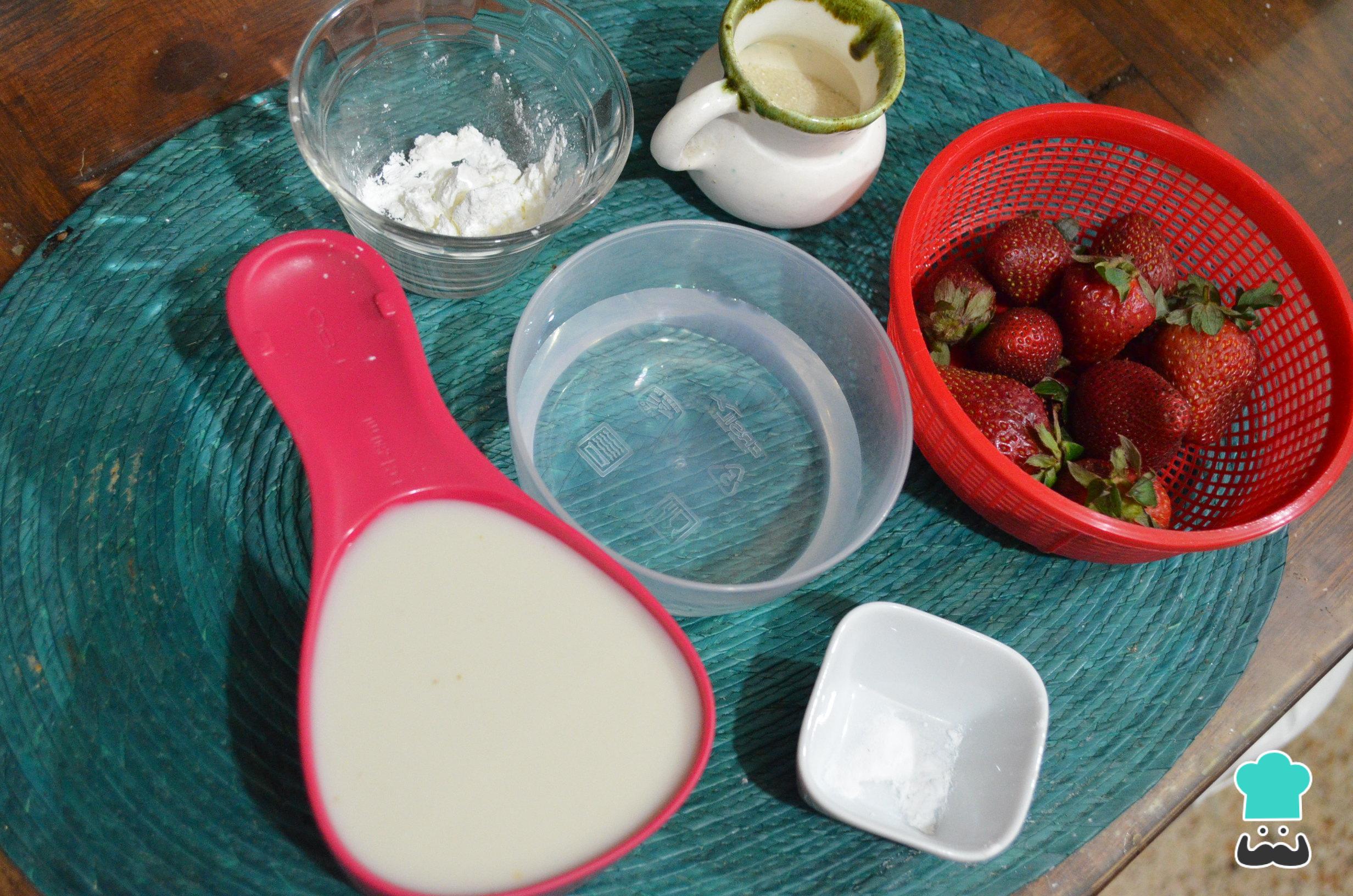 O primeiro passo para fazer o atole mexicano de morango será reunir e medir/pesar todos os ingredientes.