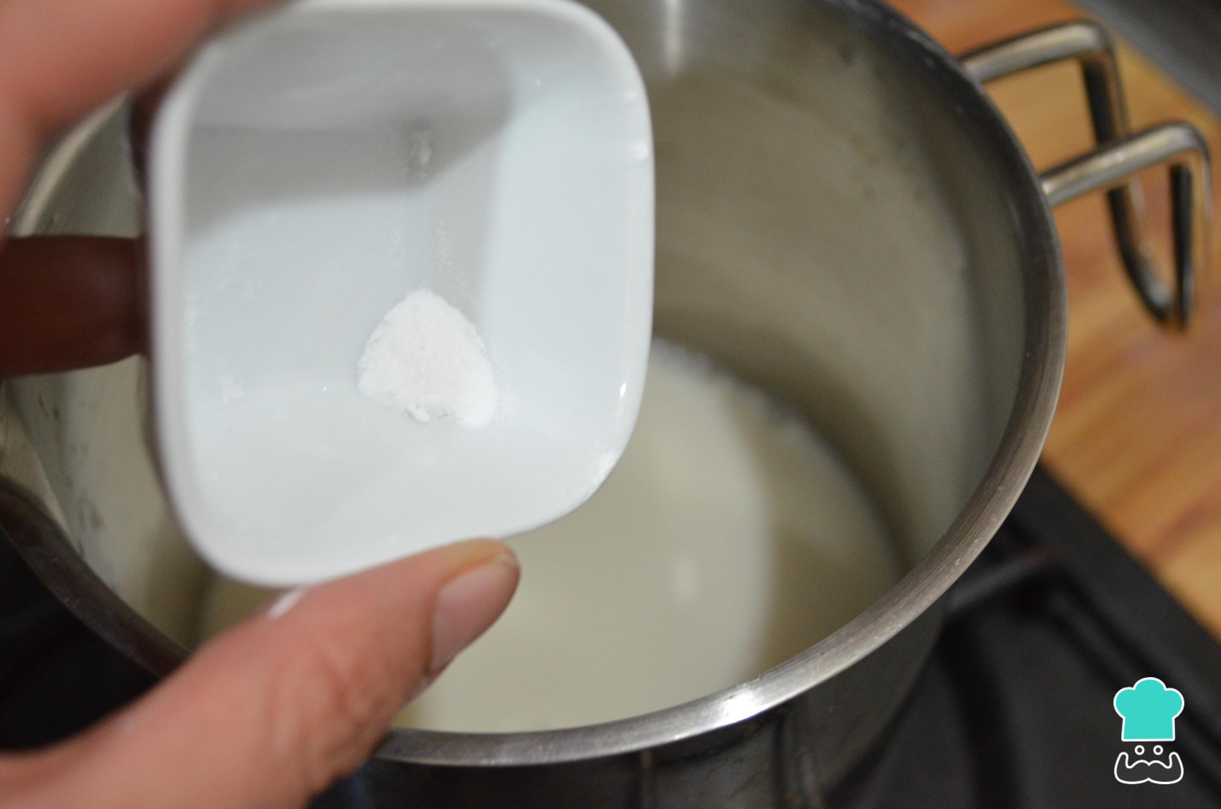 À parte, dissolva o amido na água restante e junte à preparação anterior. Fique mexendo até engrossar.