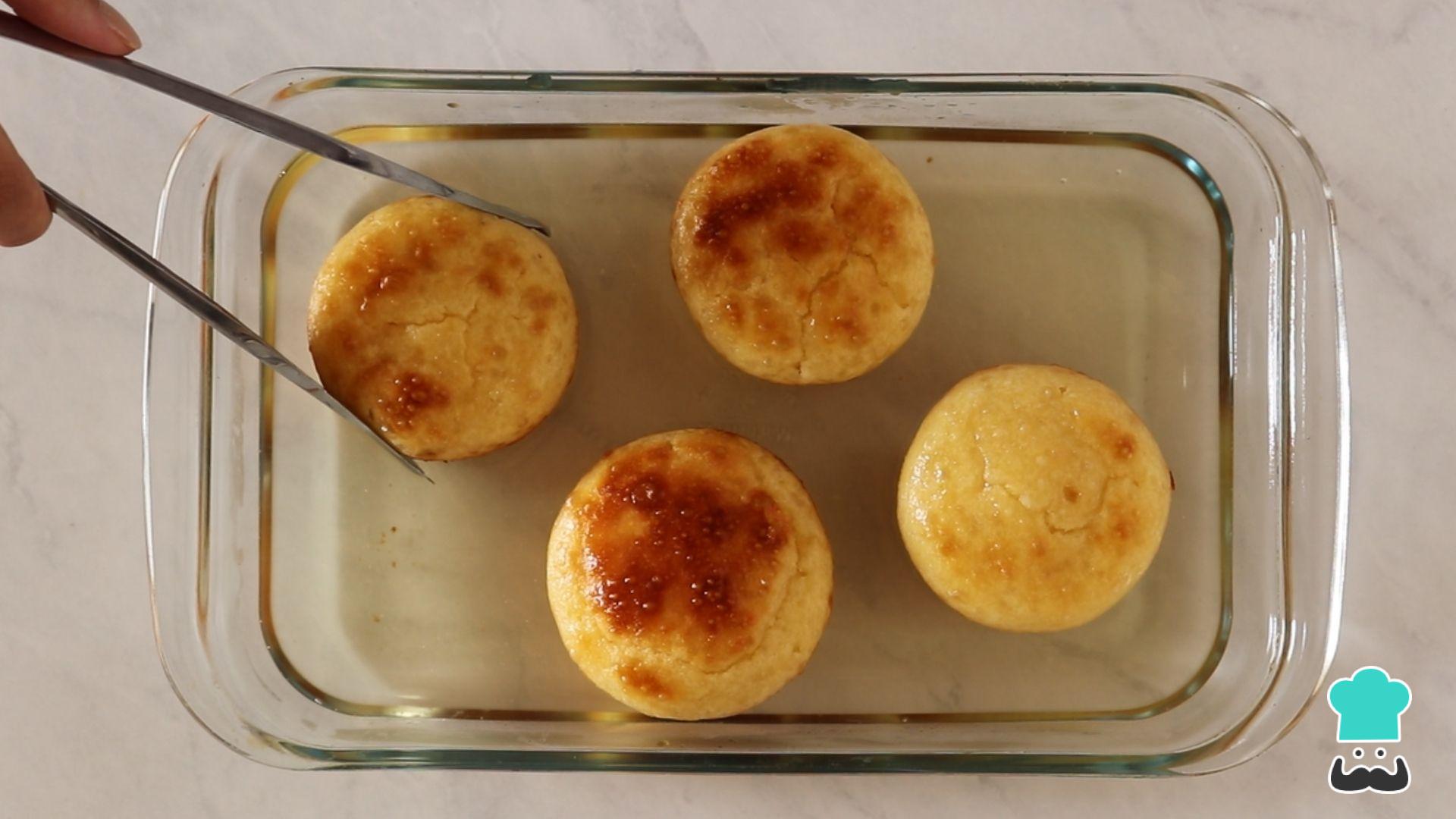 Assim que desenformar, mergulhe os bolinhos na calda - é para mergulhar os bolinhos mesmo, gente! Eles irão ficar bem molhadinhos e deliciosos como você verá mais para a frente.