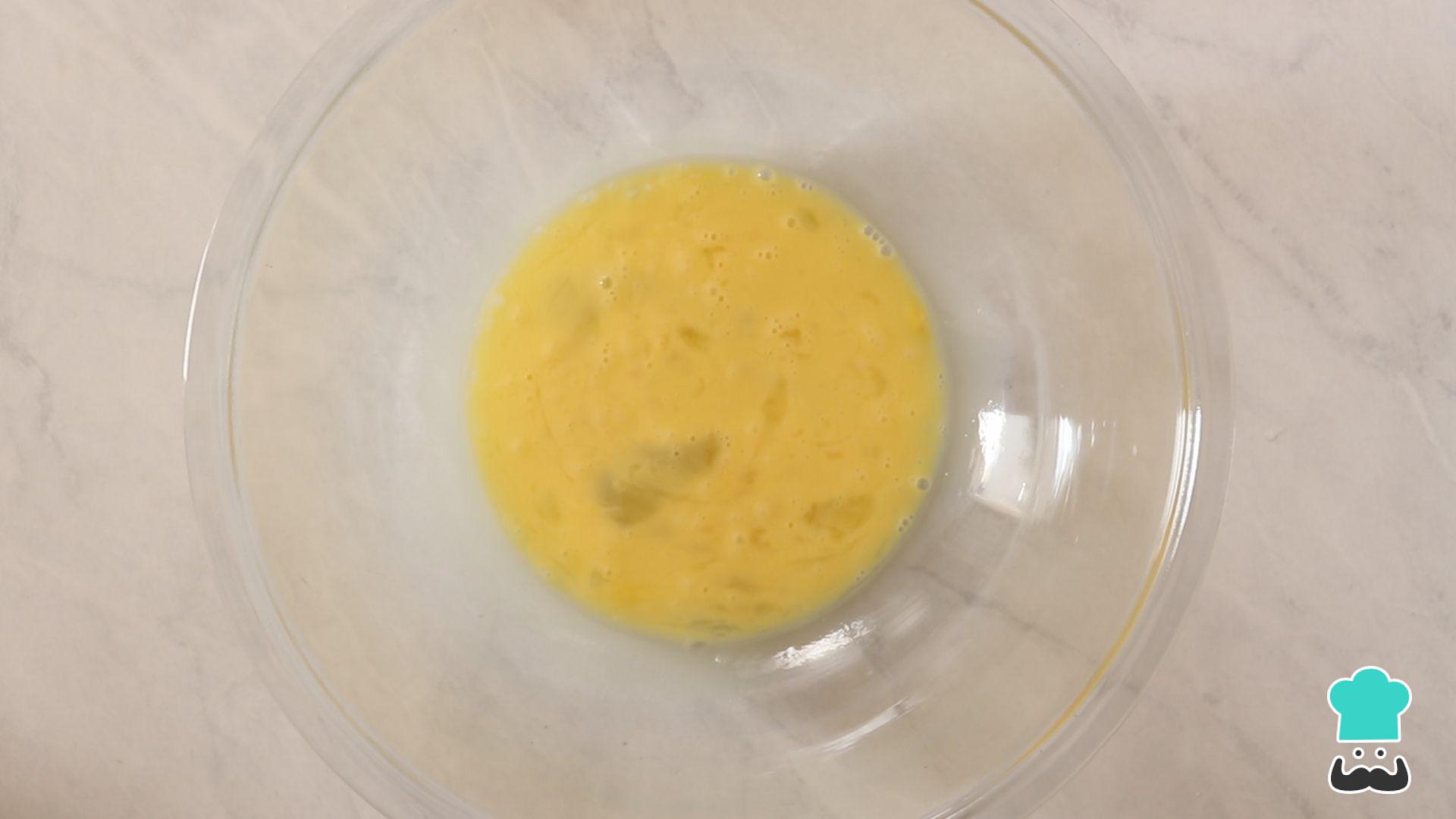 Em uma tigela grande quebre os dois ovos e bata ligeiramente com um garfo.