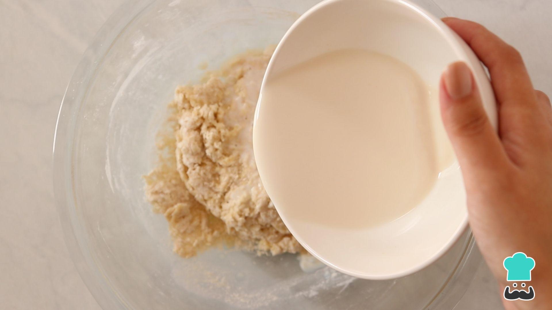 Despeje a mistura de leite e fermento e misture mais uma vez.