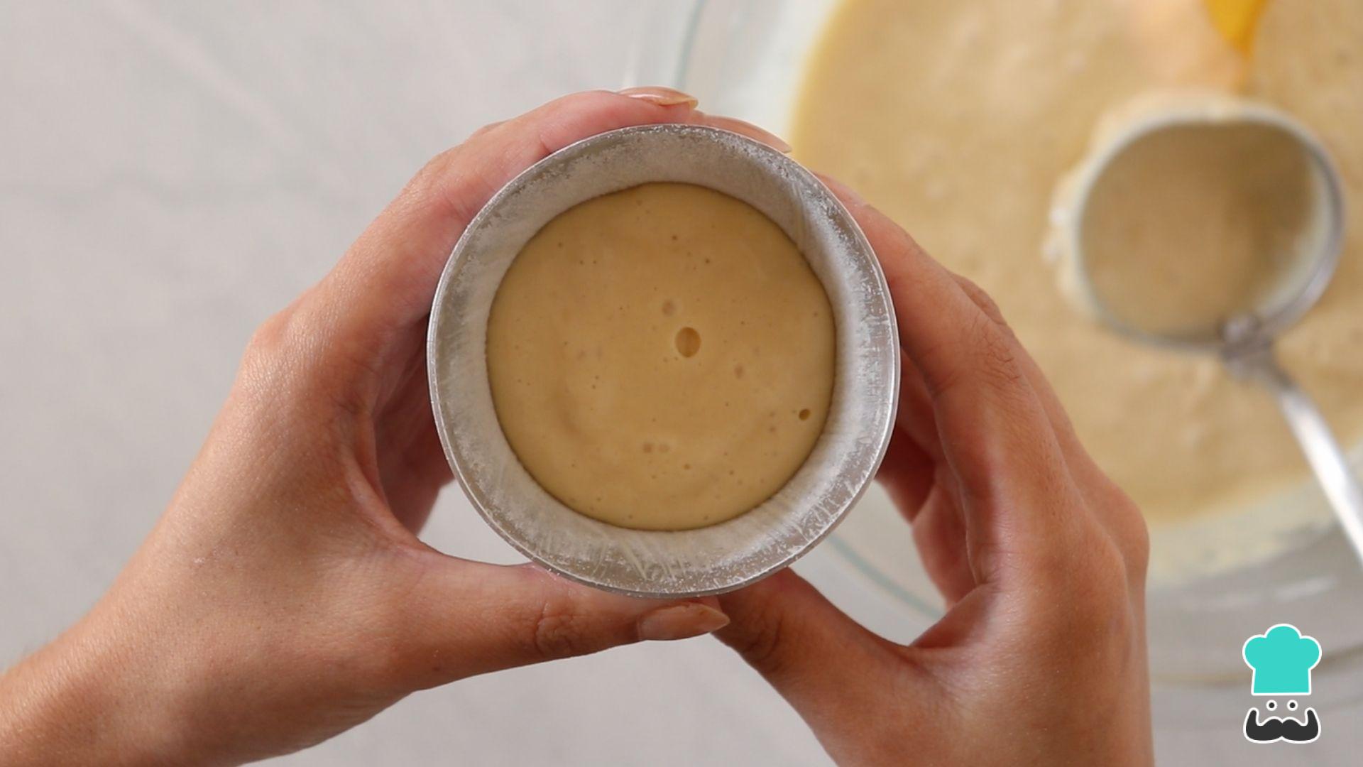 Despeje a massa em formas individuais untadas com manteiga a farinha (pode ser forma de empada, de cupcake ou, se preferir, pode usar também uma forma de pudim e fazer uma versão grande do baba ao rum).