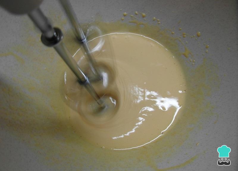 De seguida bata as gemas com a batedeira até obter um creme bem claro que forma bolhinhas. Quanto mais cremoso estiver, melhor ficará a consistência da baba de camelo no final!
