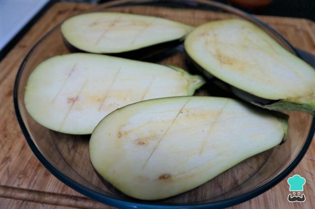 - Opção 2: no forno - corte a berinjela ao meio, faça alguns cortes transversais na polpa e regue com um pouco de azeite. Leve para assar no forno aquecido a 200°C por 20-30 minutos ou até ficar macia e douradinha.