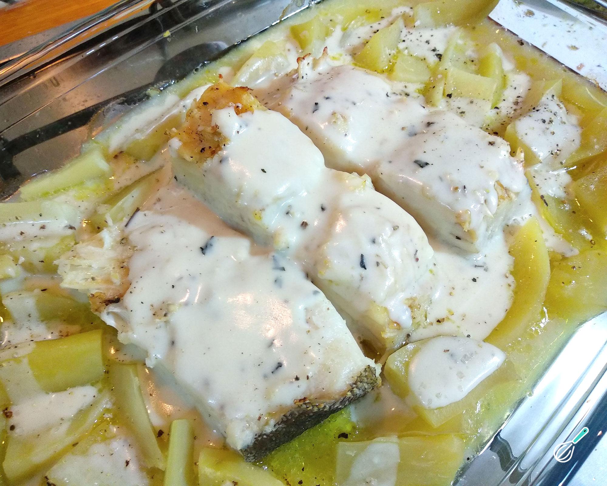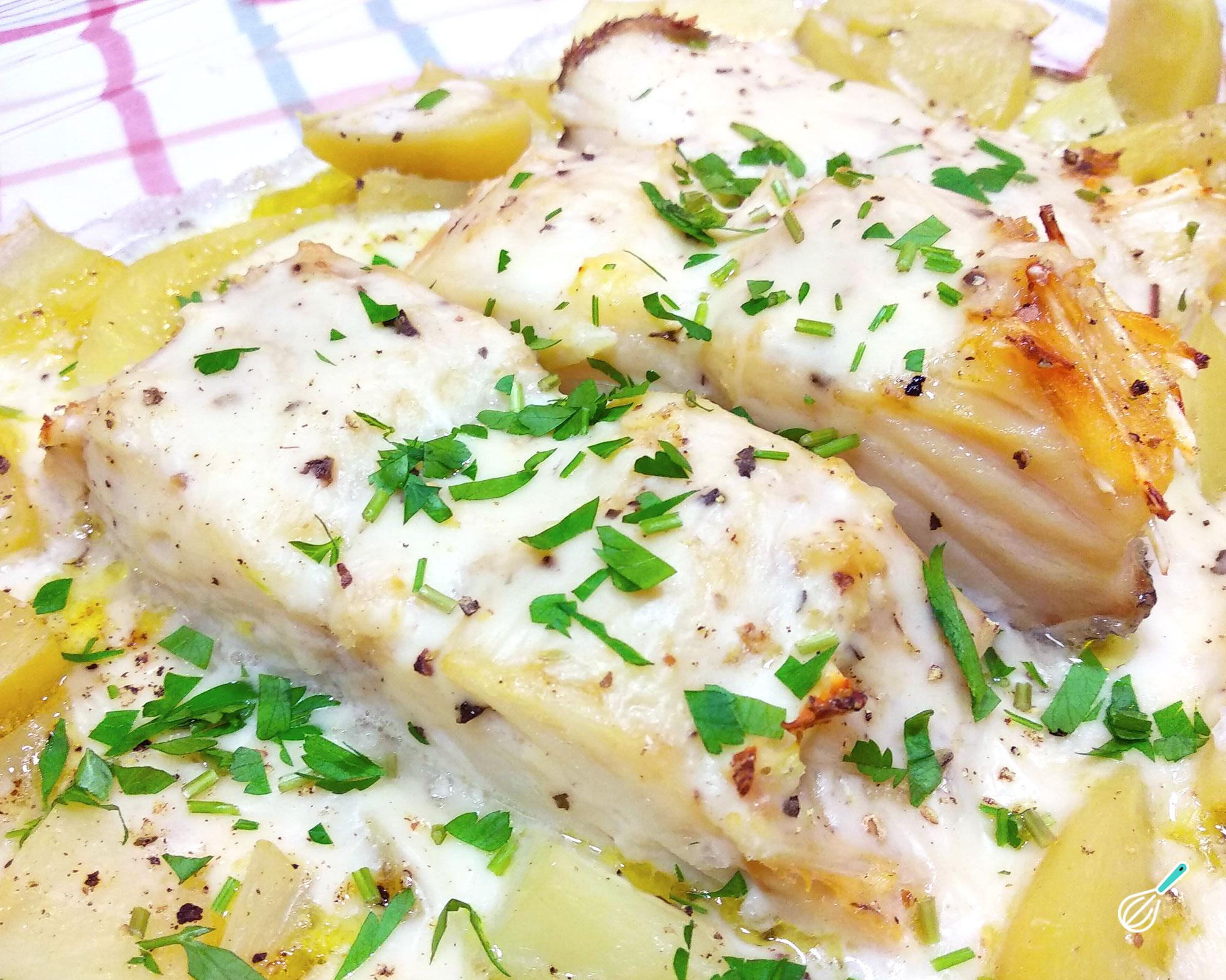 Quando penso em cozinhar bacalhau gosto de preparar receitas mais elaboradas, aproveitando para fazer alguns testes de receitas de bacalhau para mais tarde servir na Páscoa, no Natal ou em alguma outra ocasião especial. Nesta ocasião preparei postas de bacalhau no forno com batata e molho branco e o resultado surpreendeu cá em casa!