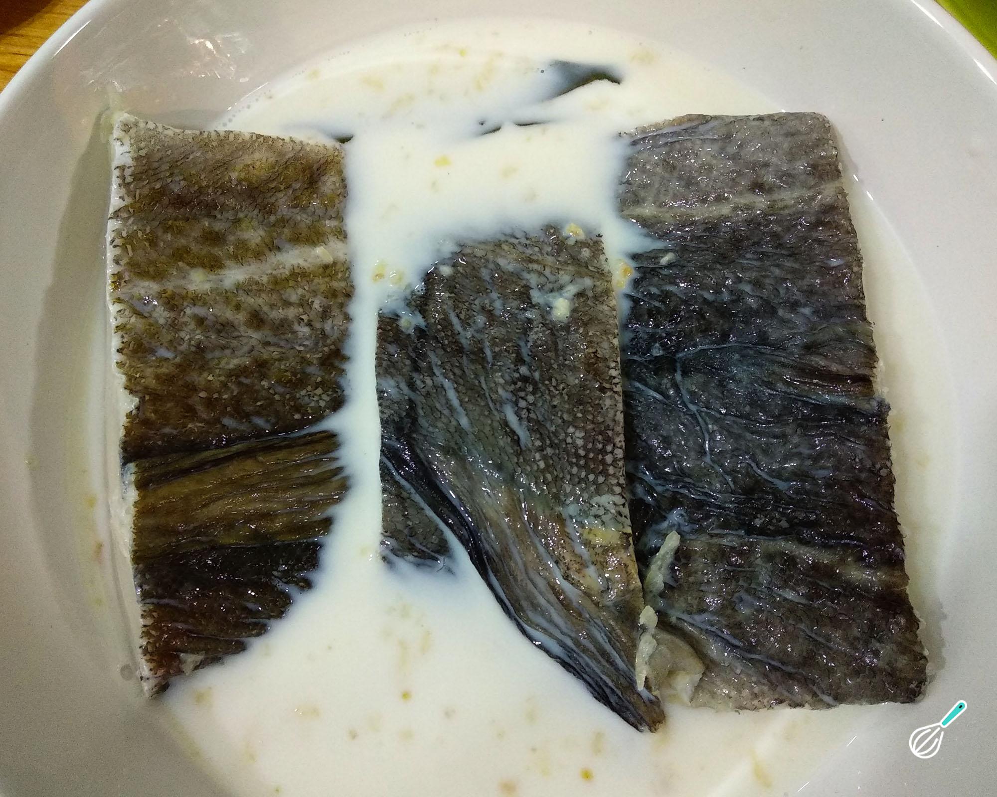 Dica: Neste momento o bacalhau já deverá estar dessalgado, esta demolha em leite permite somente que fique mais macio e saboroso.