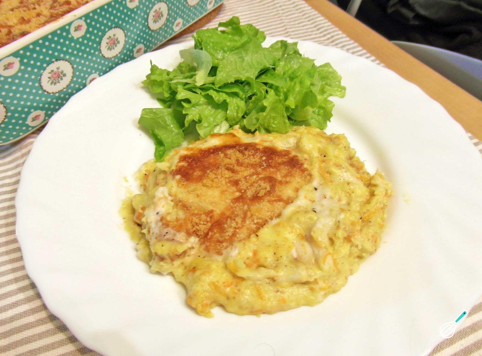 Verta a mistura para uma assadeira untada e cubra com o molho branco restante. Polvilhe o queijo ralado e a farinha de rosca, para conseguir uma crosta crocante, e leve a gratinar no forno preaquecido a 200ºC por cerca de 15 minutos.