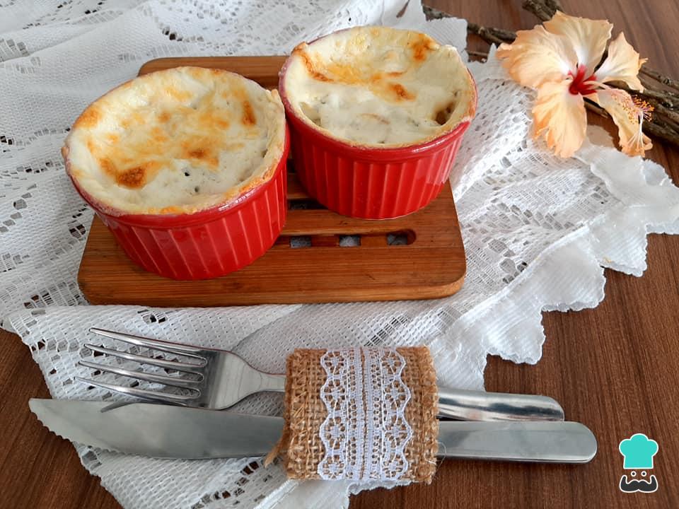 Dica extra: se preferir servir como entradas individuais, sugerimos que monte o prato em ramequins ou tigelas de cerâmica que possam ir ao forno, como na foto. Leve para assar em forno pré aquecido até gratinar!