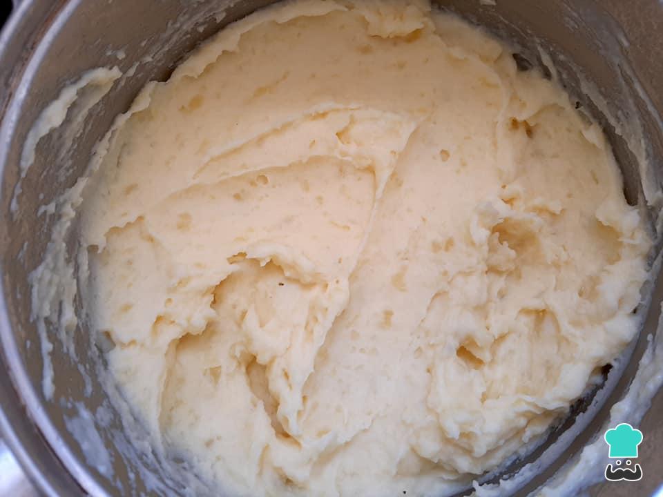 Leve esse purê de batata ao fogo baixo para cozinhar rapidamente, até ficar bem cremoso e homogêneo. É importante que o purê tenha boa consistência, pois será a base da nossa receita no refratário. Reserve.
