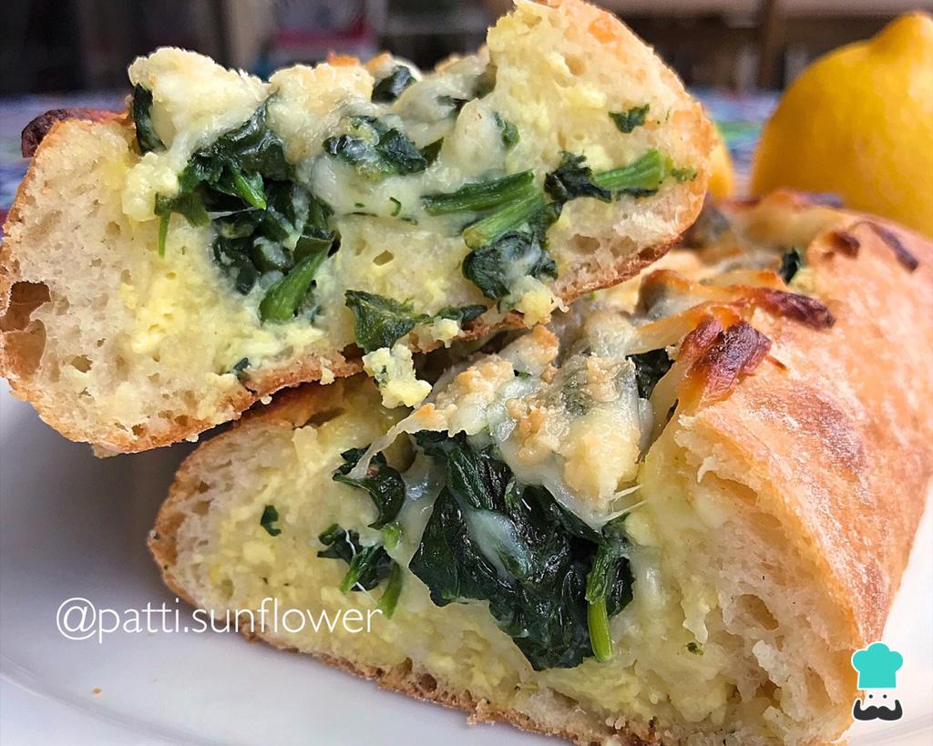 Gosto de fazer pão de forno recheado para receber os amigos em casa ou para comer sozinha vendo um documentário. Esta receita de baguete recheada no forno com espinafre, raspas de limão siciliano, mostarda Dijon e mussarela é fantástica! A combinação de ingredientes é inusitada mas garanto para você que super funciona. Vem aqui no TudoReceitas que vou contar tudinho o que precisa saber para reproduzir este pão italiano recheado aí na sua casa!