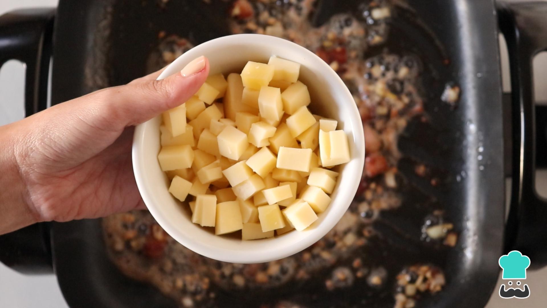Em seguida acrescente o queijo coalho, misture e deixe dourar.