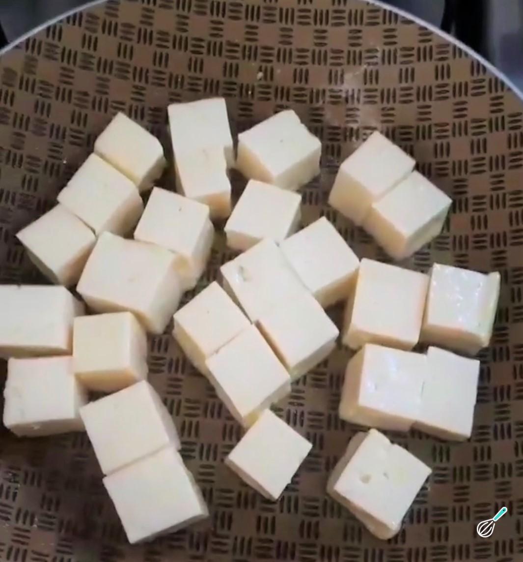 Corte o queijo coalho em cubos e frite em uma frigideira com um fio de azeite para não grudar