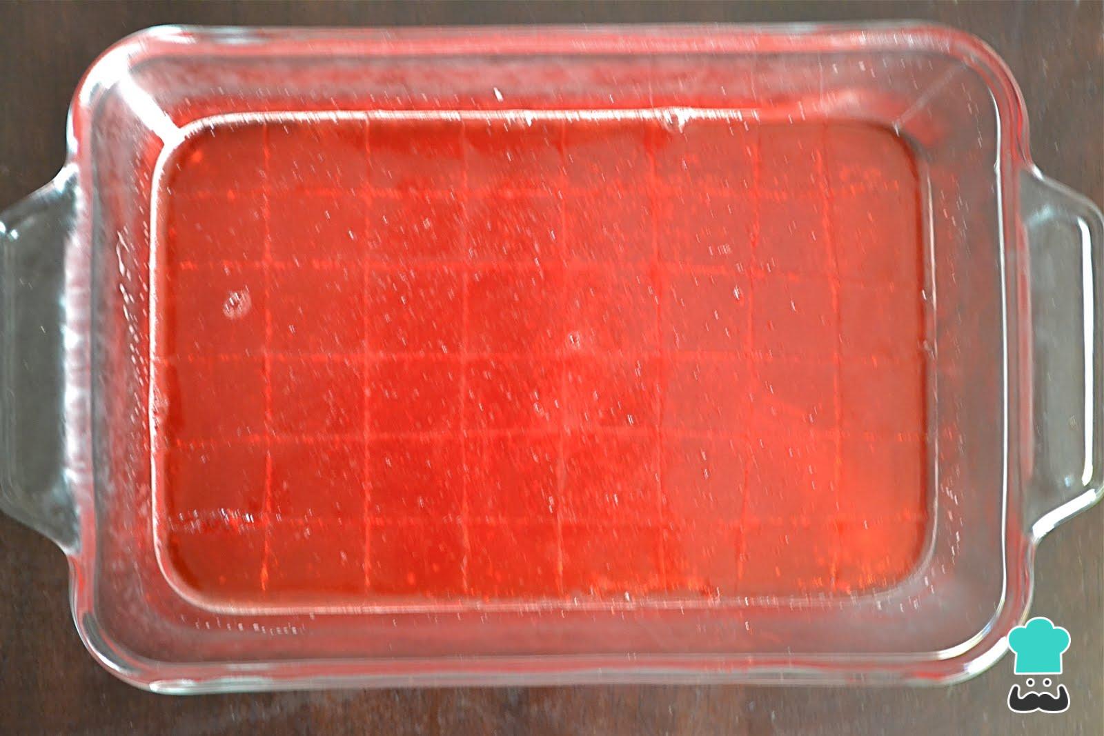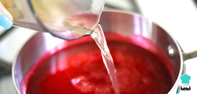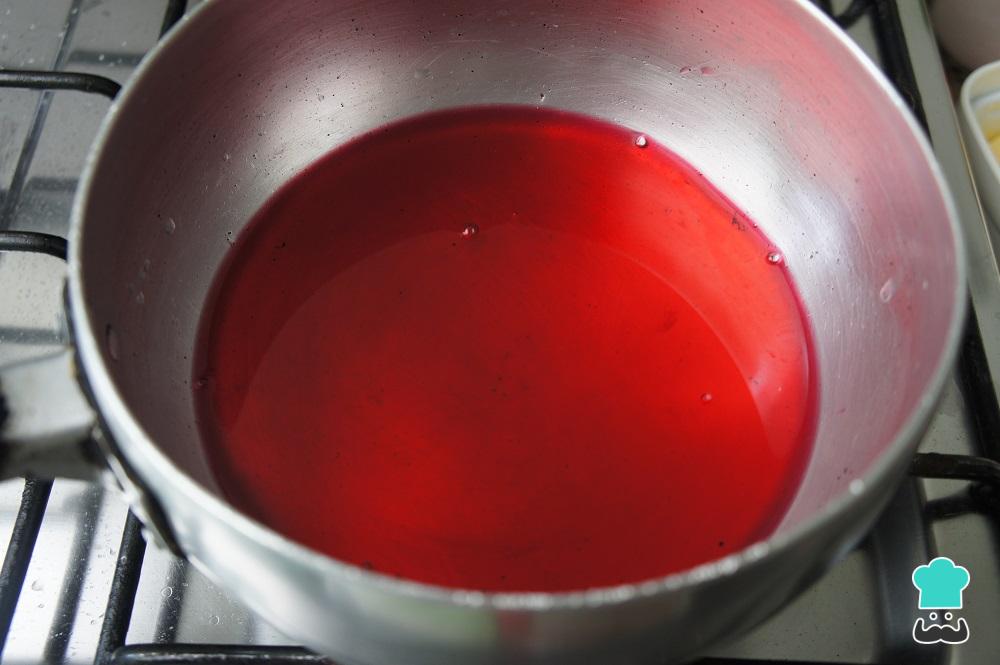 Para preparar bala de cachaça comece por dissolver a gelatina com 1 xícara de água em uma panela. Leve ao fogo e deixe dissolver em fogo médio.
