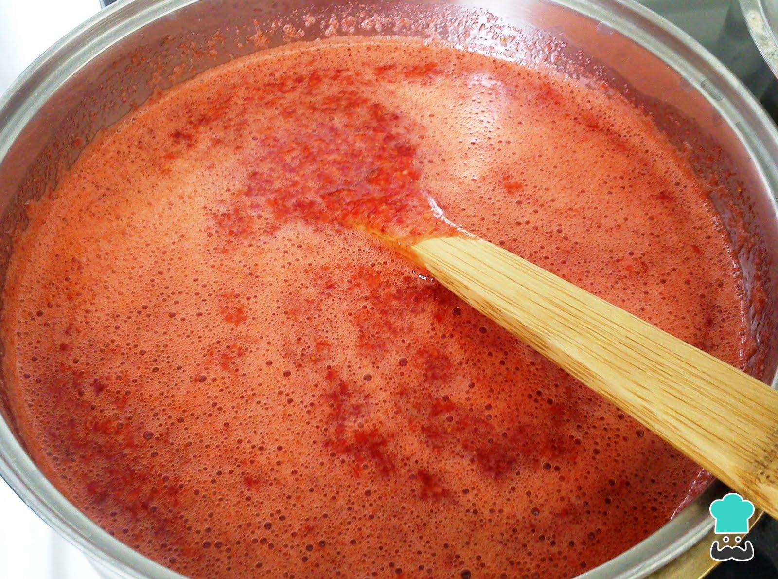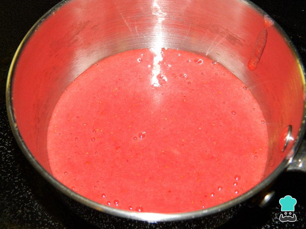 Leve esta mistura de fruta a fogo baixo e cozinhe durante 3-4 minutos, mexendo sempre para que todo o ágar-ágar se desfaça.