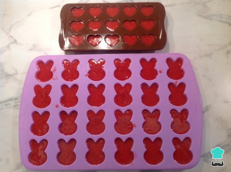 Imediatamente depois, retire a panela do fogo e coloque a mistura das balas de goma em uma forma de silicone para chocolates ou para gelo. Deixe esfriar até chegar à temperatura ambiente e, em seguida, leve à geladeira por uma hora.