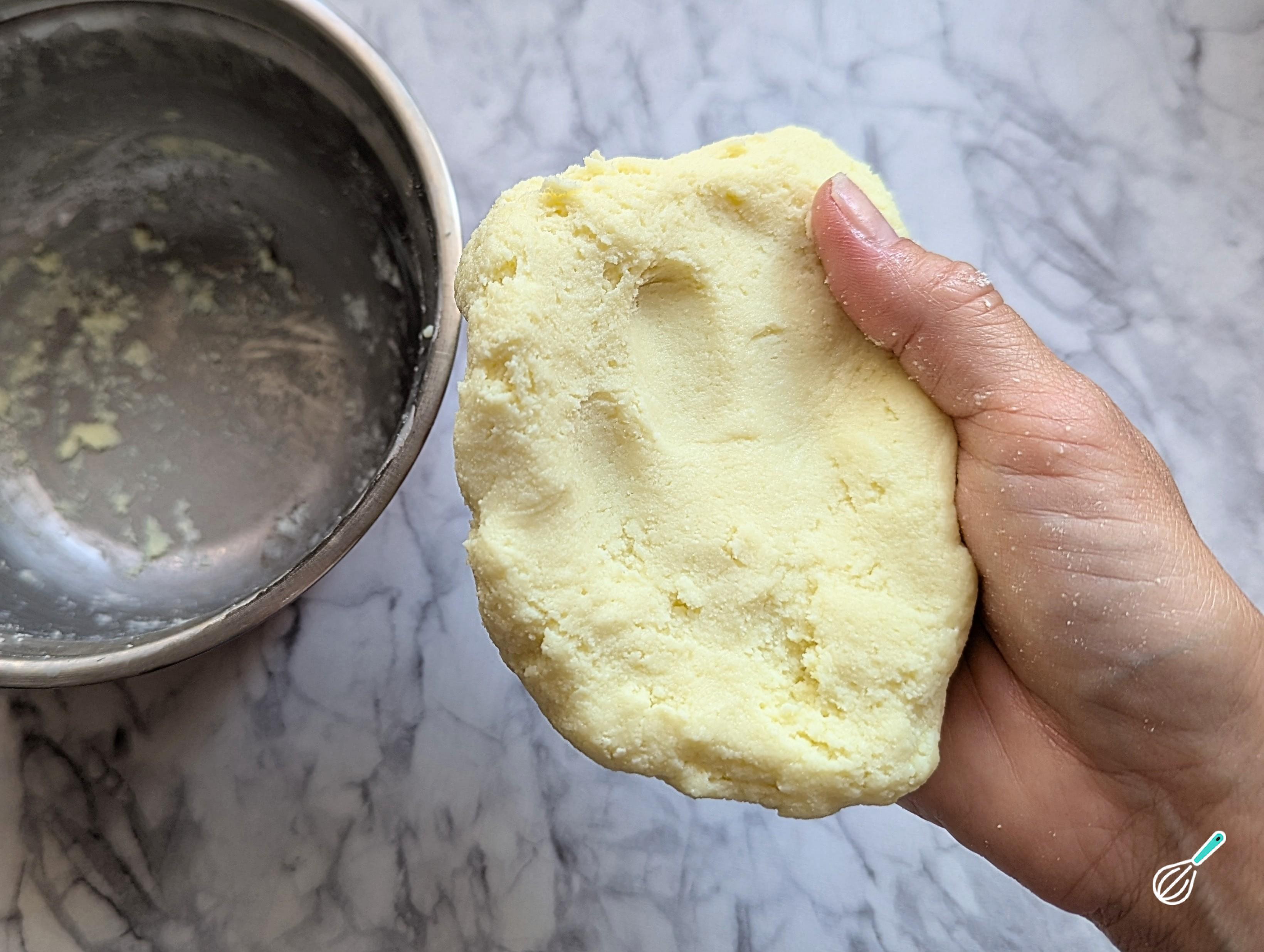 A massa ideal tem que desgrudar das mãos, mas que ainda seja macia ao toque. Quando estiver nesse ponto, a massa estará pronta.