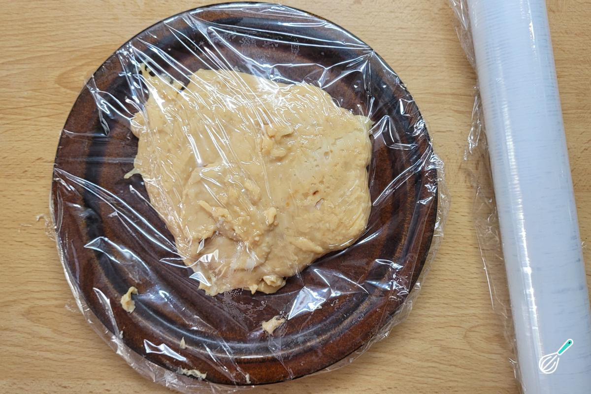 Cubra com plástico filme e deixe esfriar completamente em temperatura ambiente.