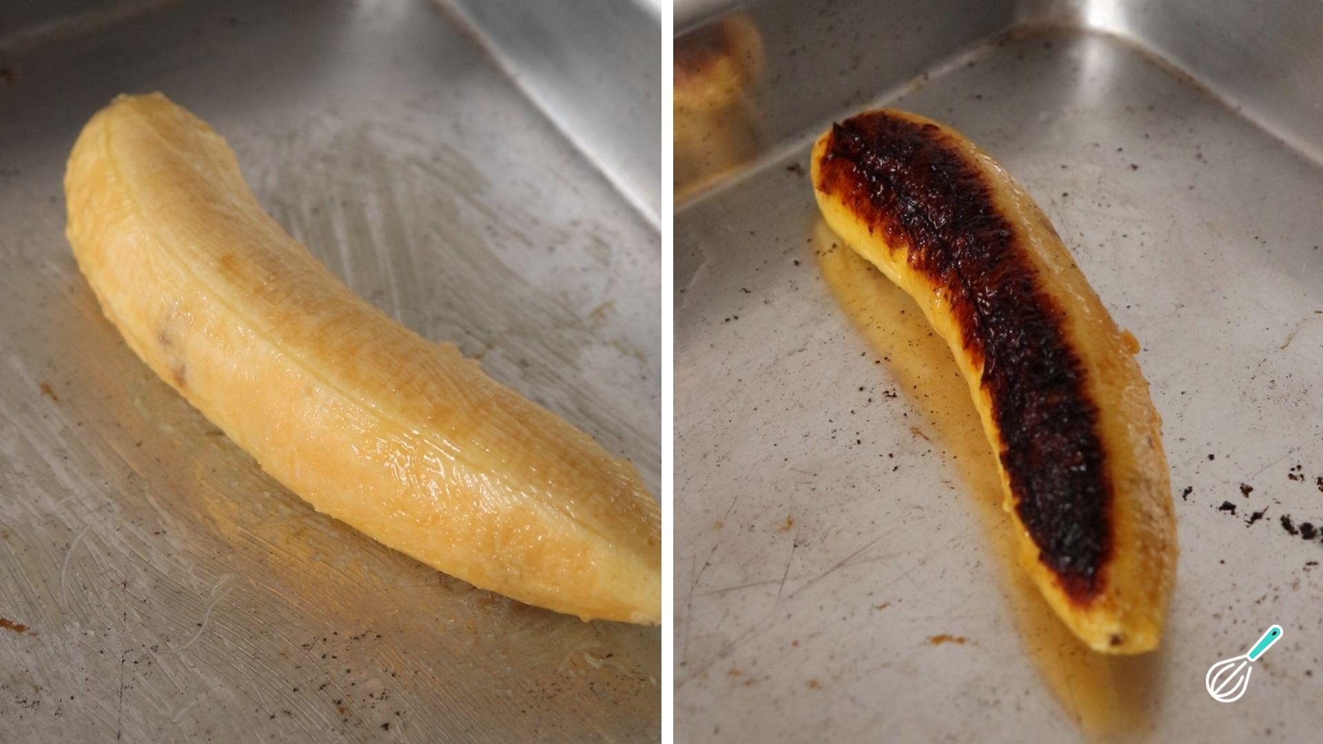 Unte uma forma com o restante da manteiga, coloque a banana e leve para assar em forno pré-aquecido a 180ºC por 20 minutos. Com cuidado para não se queimar, vire a banana e doure o outro lado por mais 10 minutos.
