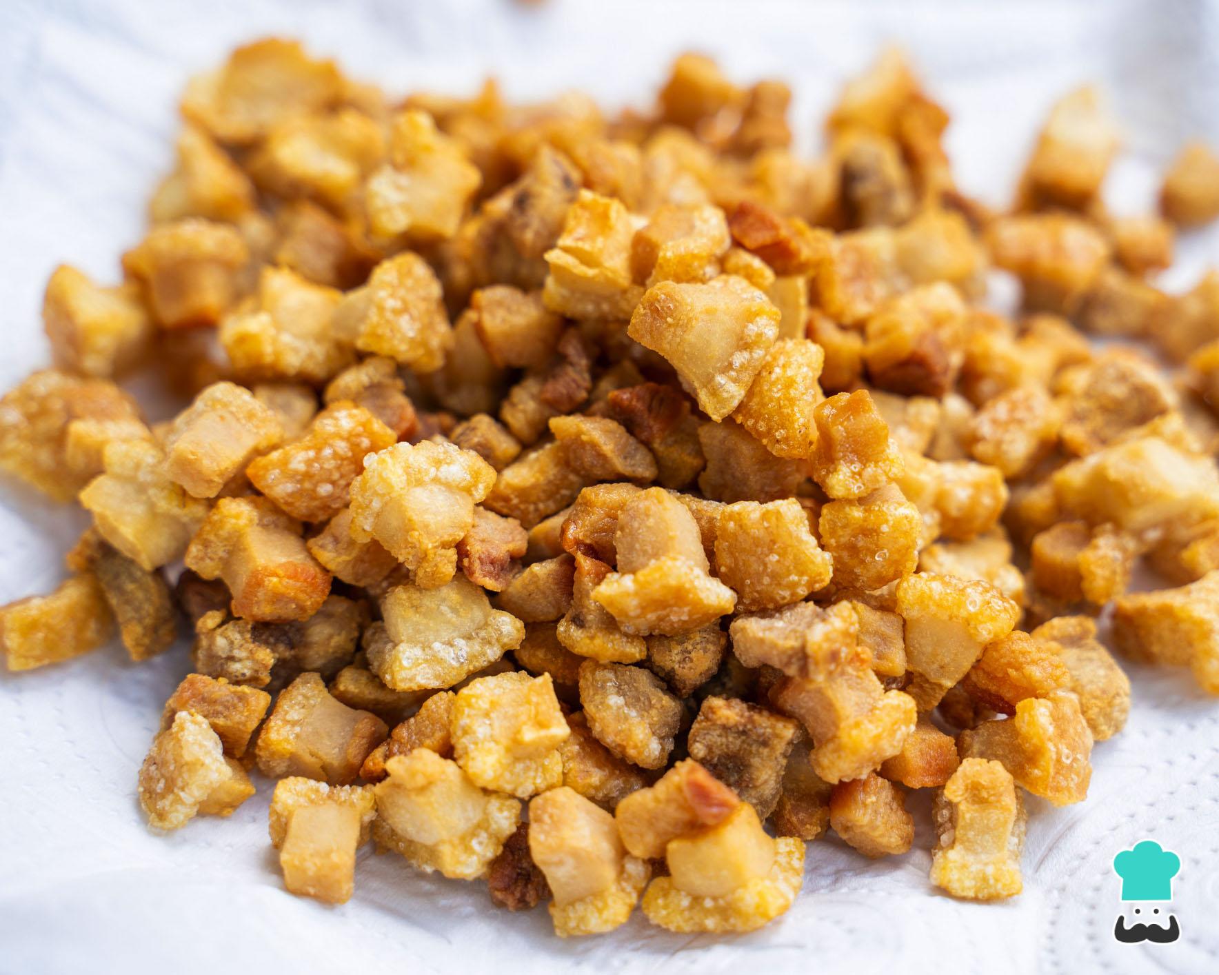 Dica: O toucinho é o mesmo que toicinho o barriga de porco. Essa quantidade de toucinho (2 quilos) rende aproximadamente 1 litro e meio de banha.