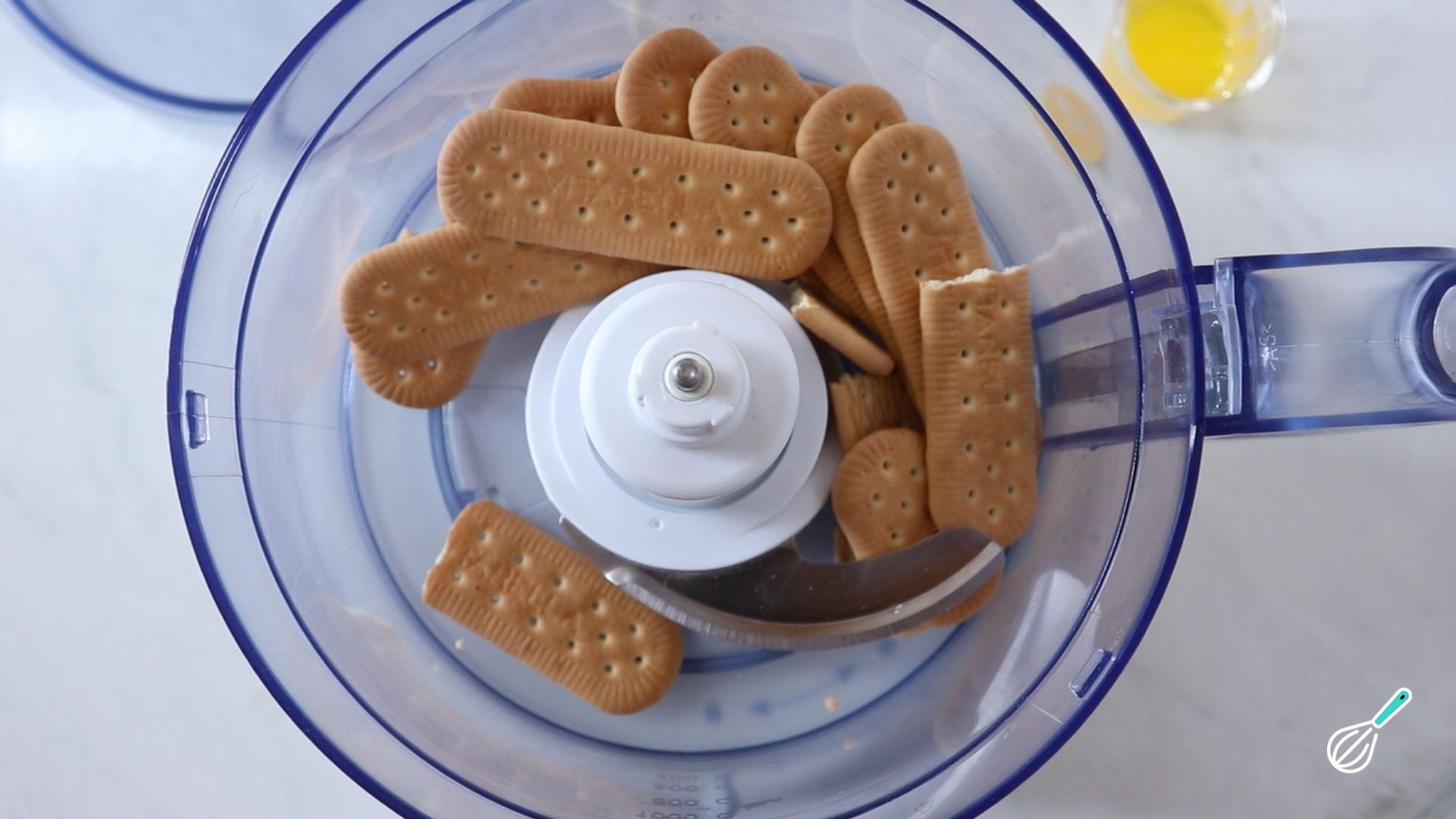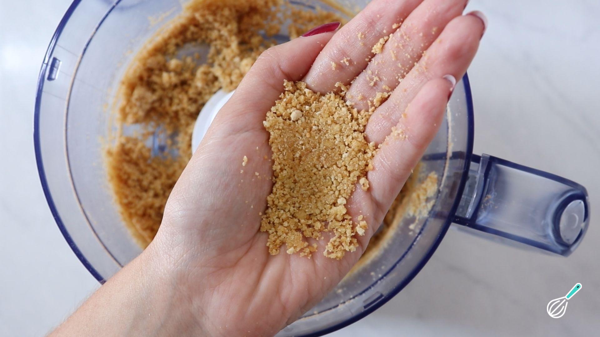 Despeje a manteiga derretida e bata novamente até virar uma farofa úmida.