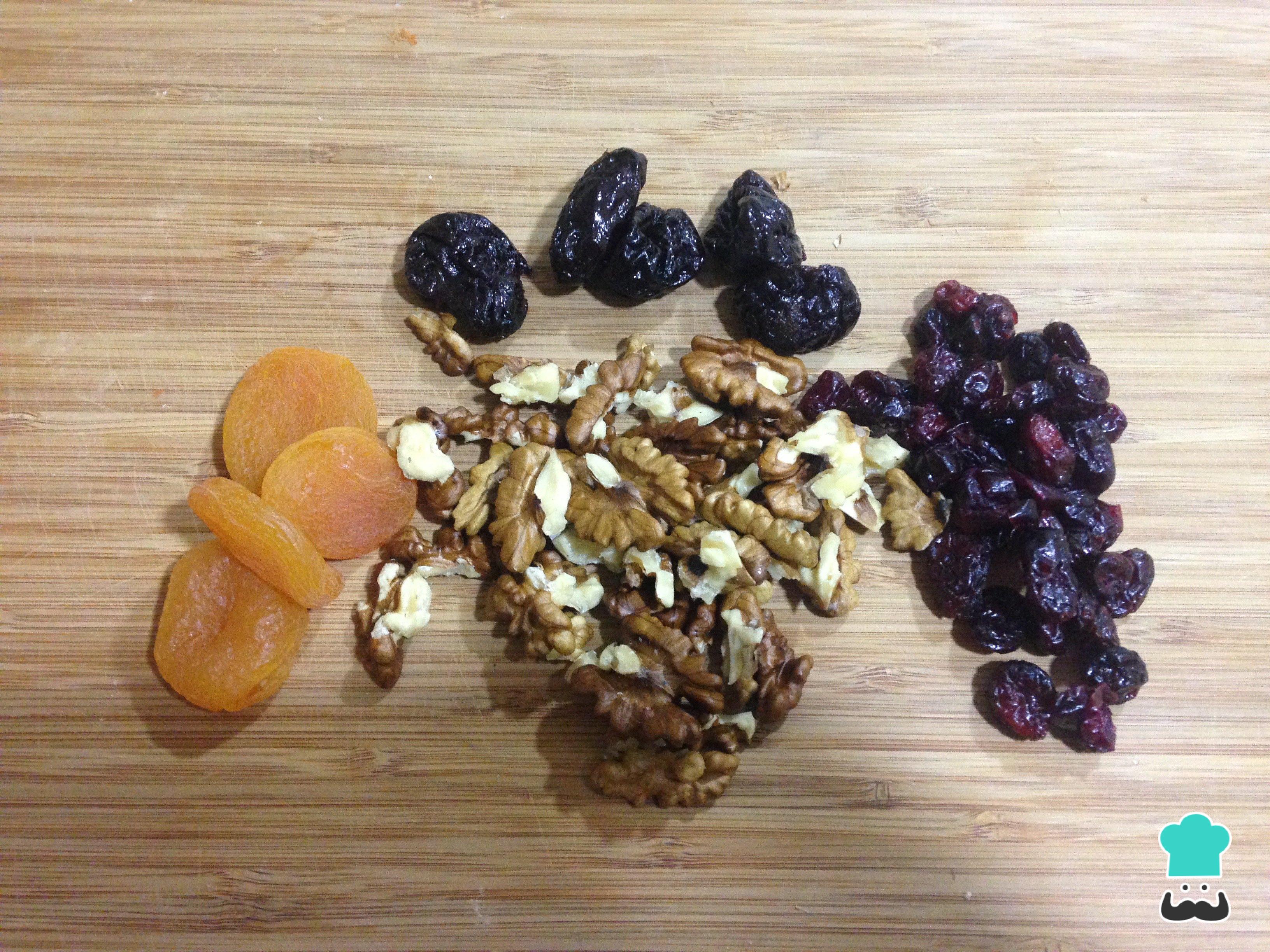 Comece por reunir os ingredientes necessários ao preparo desta receita para esportistas. Se você não encontrar algum destes ingredientes, pode substituir por outro do mesmo gênero (por exemplo: uva-passa, baga goji, tâmara, avelã, amêndoa, etc).