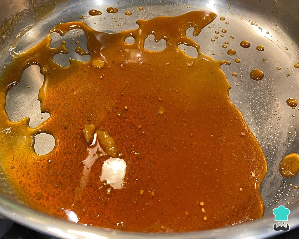 Numa frigideira funda derreta o açúcar até ele caramelar - novamente cuidado para não queimar, caramelo queimado não agrada ninguém.