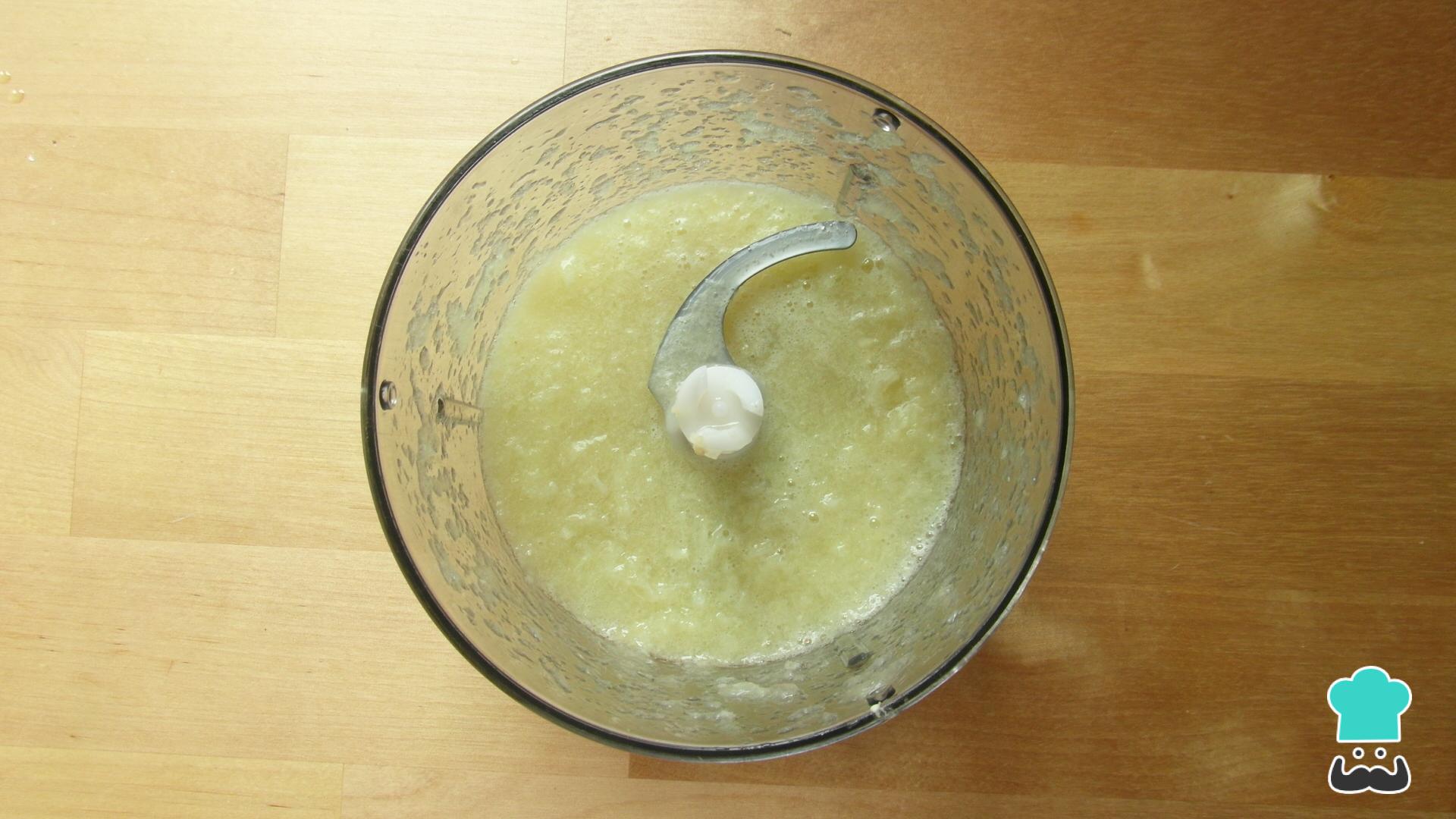 Enquanto isso prepare a cobertura: bata no liquidificador ou num processador de cozinha o suco e a polpa do limão (sem as sementes). O ideal é que a polpa do limão fique em pedaços bem pequenos, se quiser pode passar por uma peneira.
