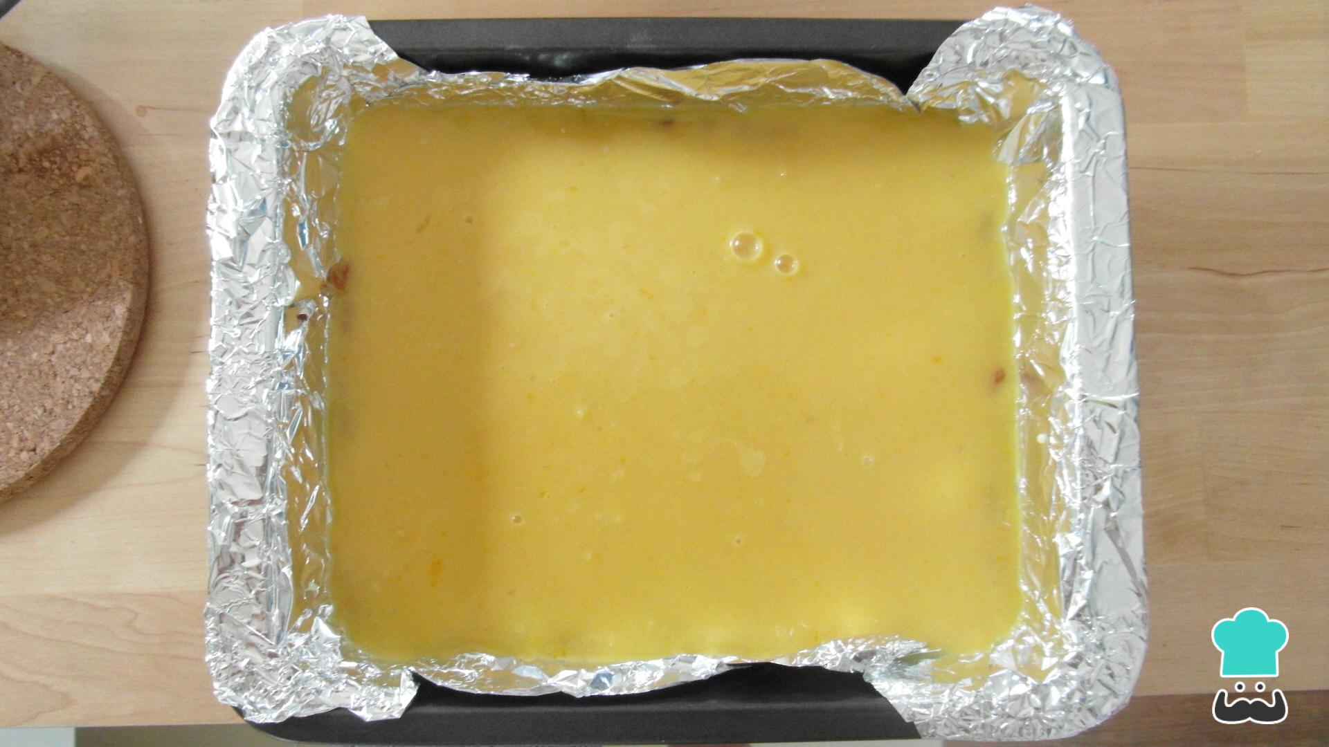 Forre com papel alumínio uma forma retangular com cerca de 20cm. Usando uma espátula, espalhe a massa das barrinhas de limão siciliano no fundo. Leve a assar no forno preaquecido a 180ºC por 20 minutos, ou até dourar.