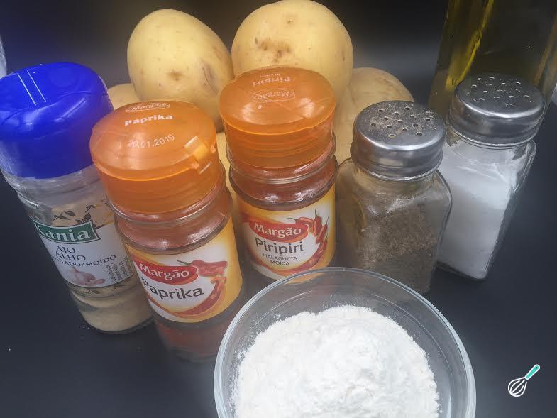 Para começar com essa receita de batata assada com páprica, comece por juntar todos os ingredientes.