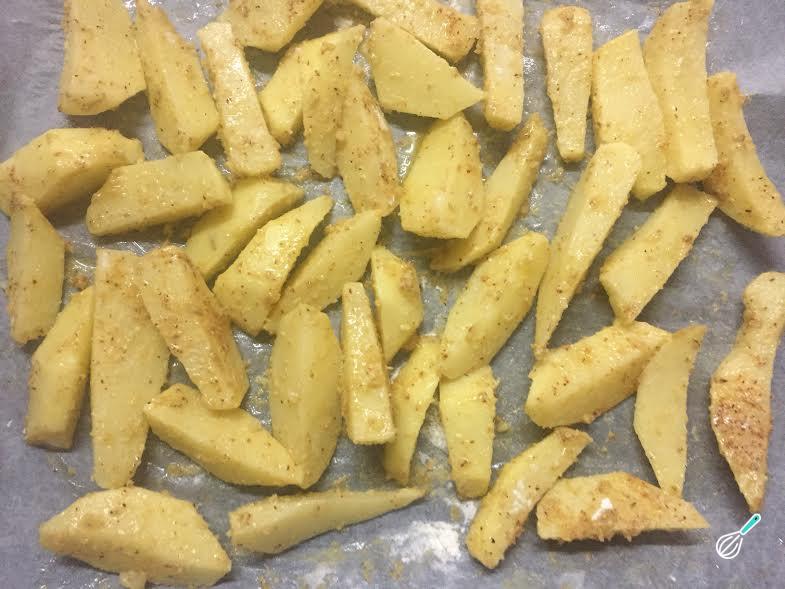 De seguida, tempere as batatas com todos os ingredientes e leve ao forno para assar.