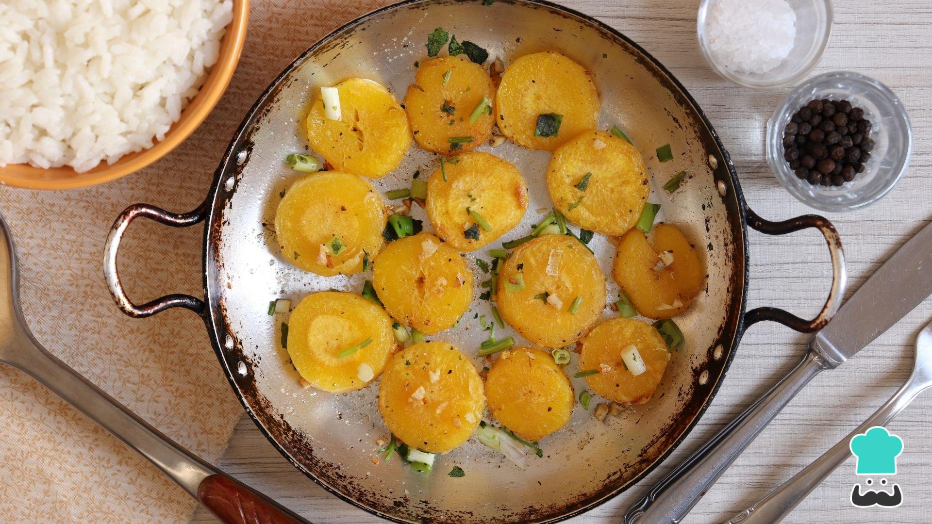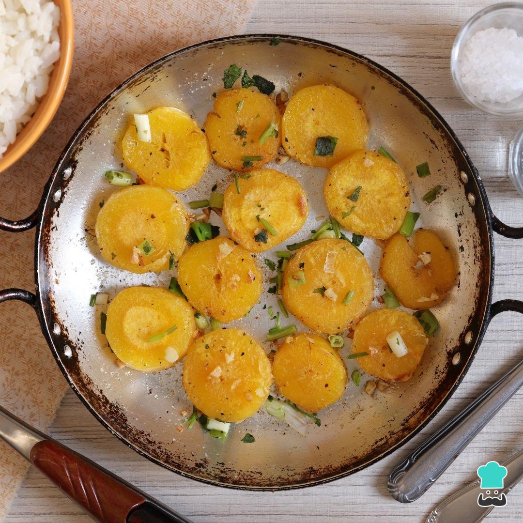 Separe os ingredientes da sua batata baroa refogada à doré.