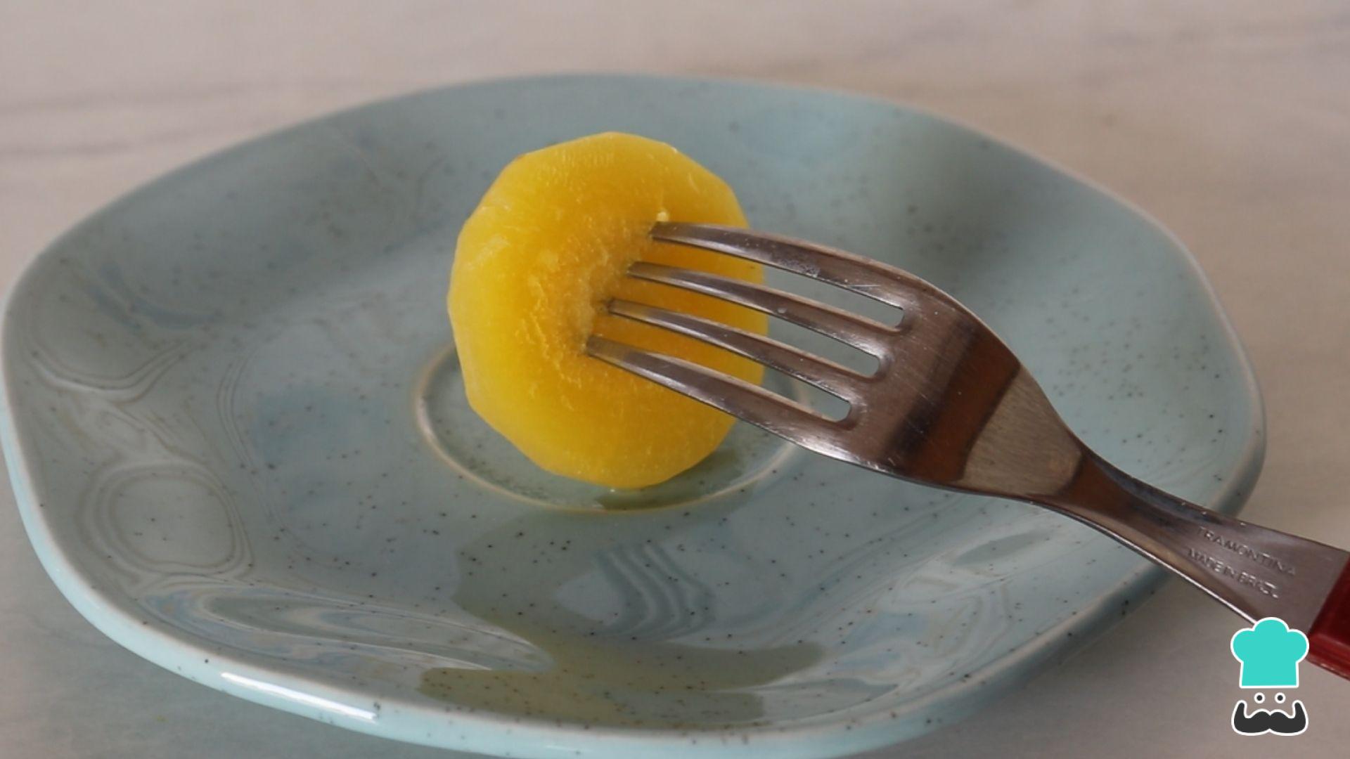Coloque em uma panela, cubra com água e cozinhe até ficar al dente. A textura ideal é essa: cozida mas ainda firme. Escorra a água e reserve a batata.