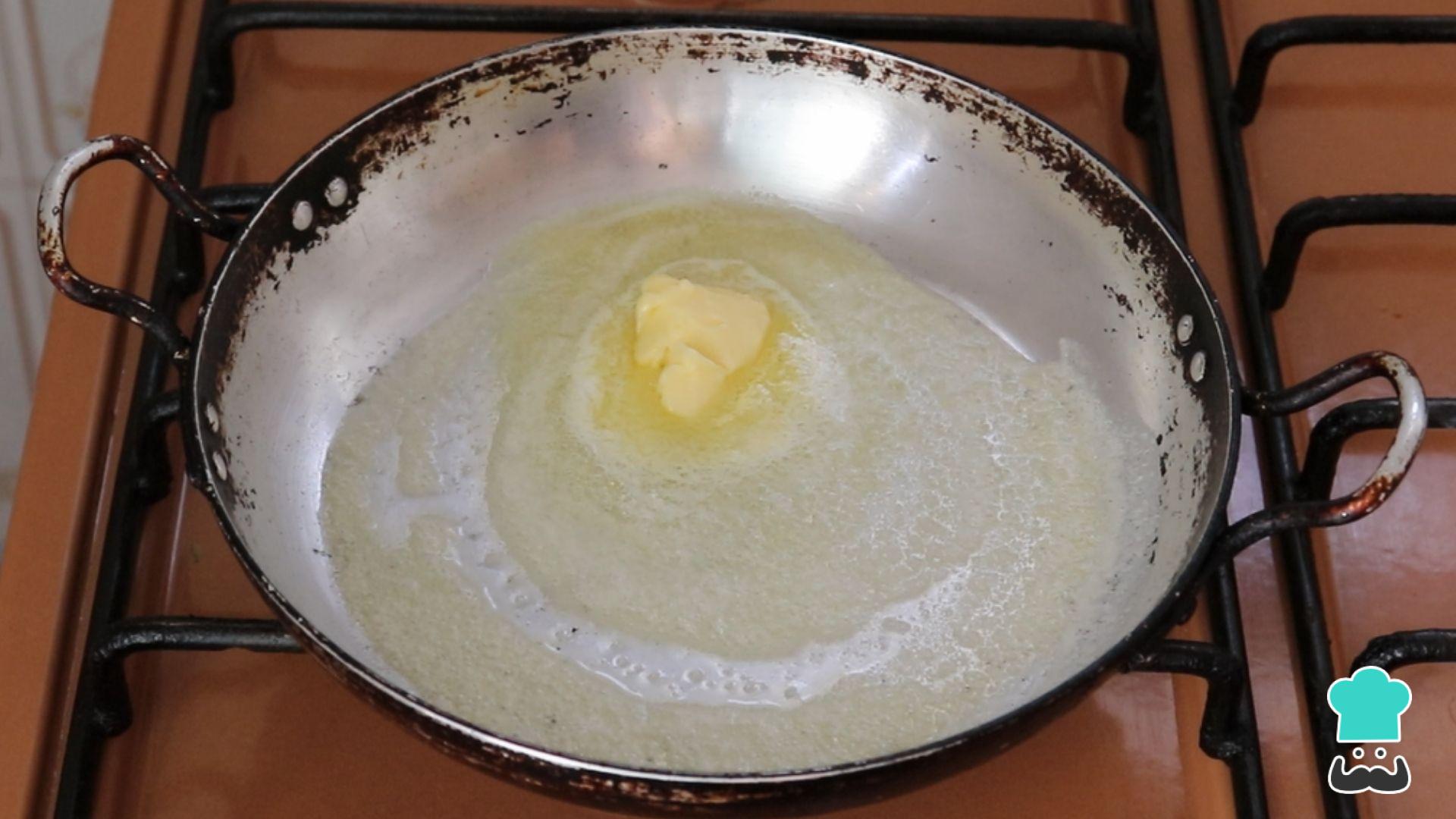 Agora leve uma frigideira ao fogo médio e coloque a manteiga para derreter.
