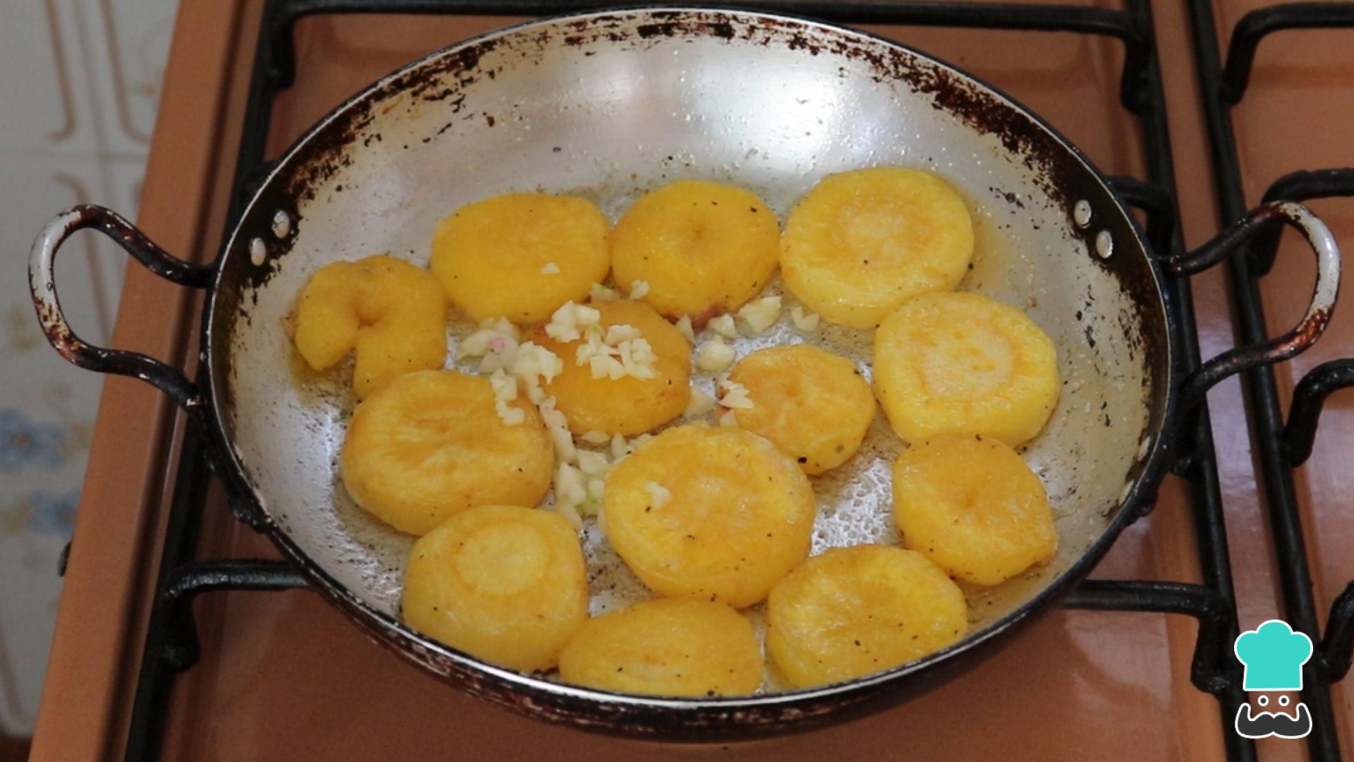Deixe cozinhar até dourar dos dois lados e acrescente o alho picado. Mexa e cozinhe por mais 1 minuto - não mais que isso, para evita o alho queimar.