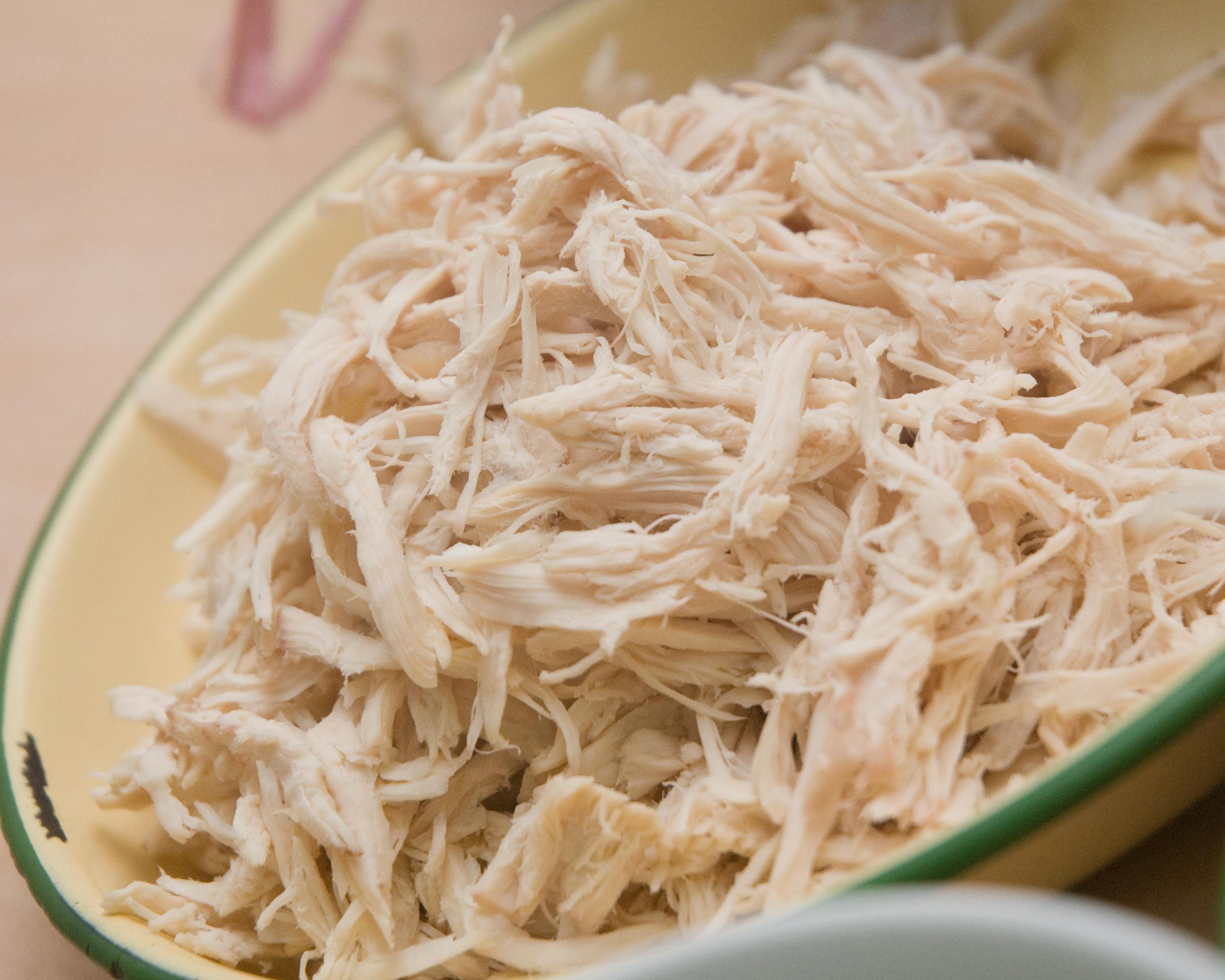 Dica: Se você quiser, pode usar sobras de frango desfiado nesta receita. Nesse caso não precisa cozinhar o frango, pule diretamente para o passo seguinte.