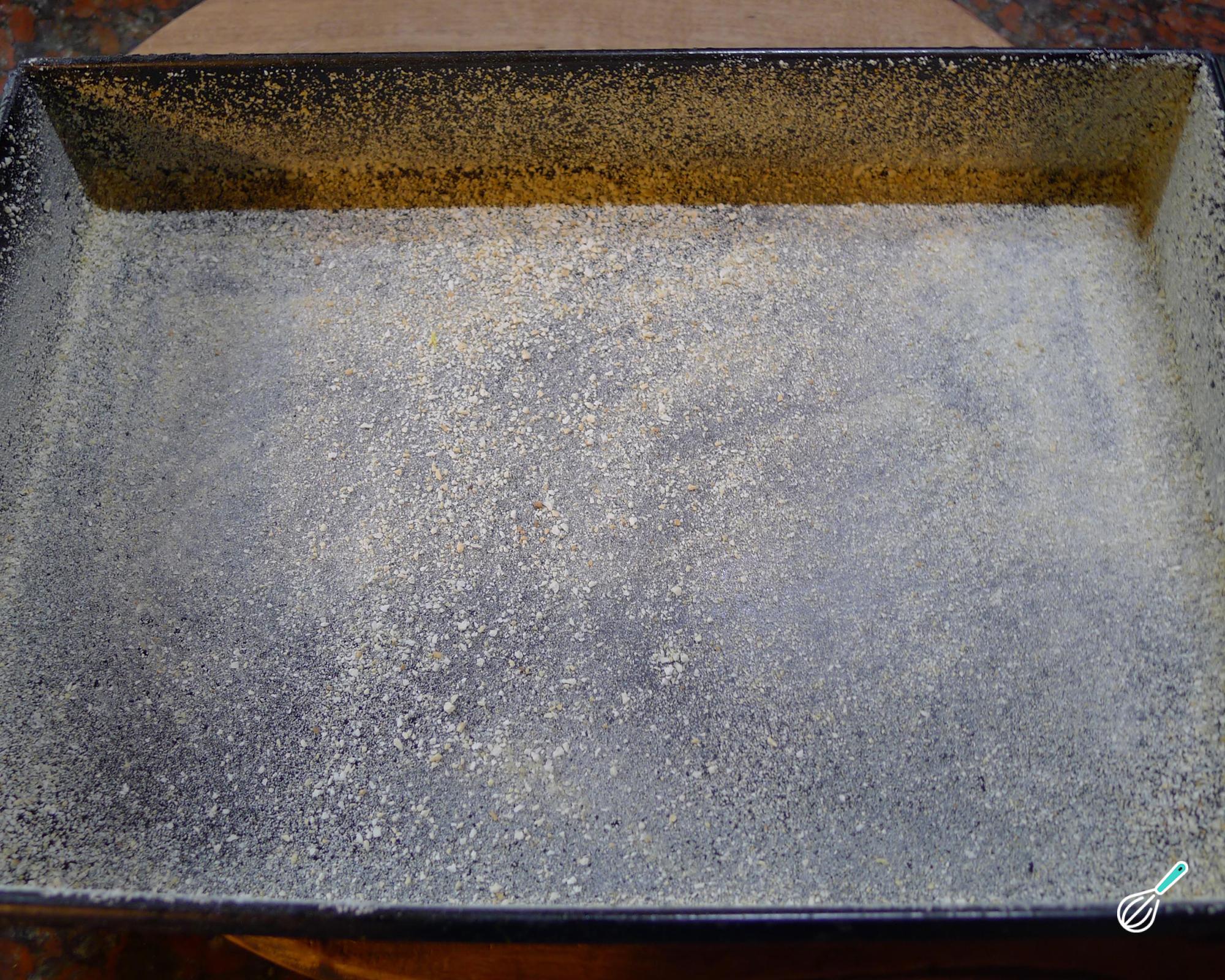 Ligue o forno nos 200ºC. Unte uma assadeira com azeite e polvilhe farinha de rosca ou farinha de mandioca, um truque para evitar que a batata grude nela.