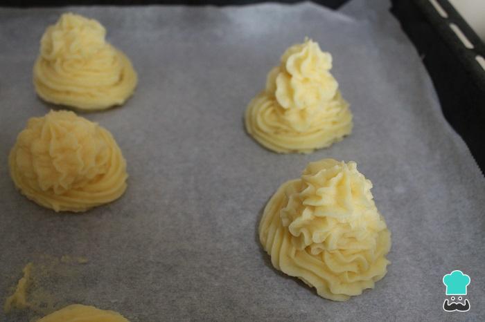 Dica: Coloque os montinhos de purê bem afastados uns dos outros para que não grudem enquanto assam.