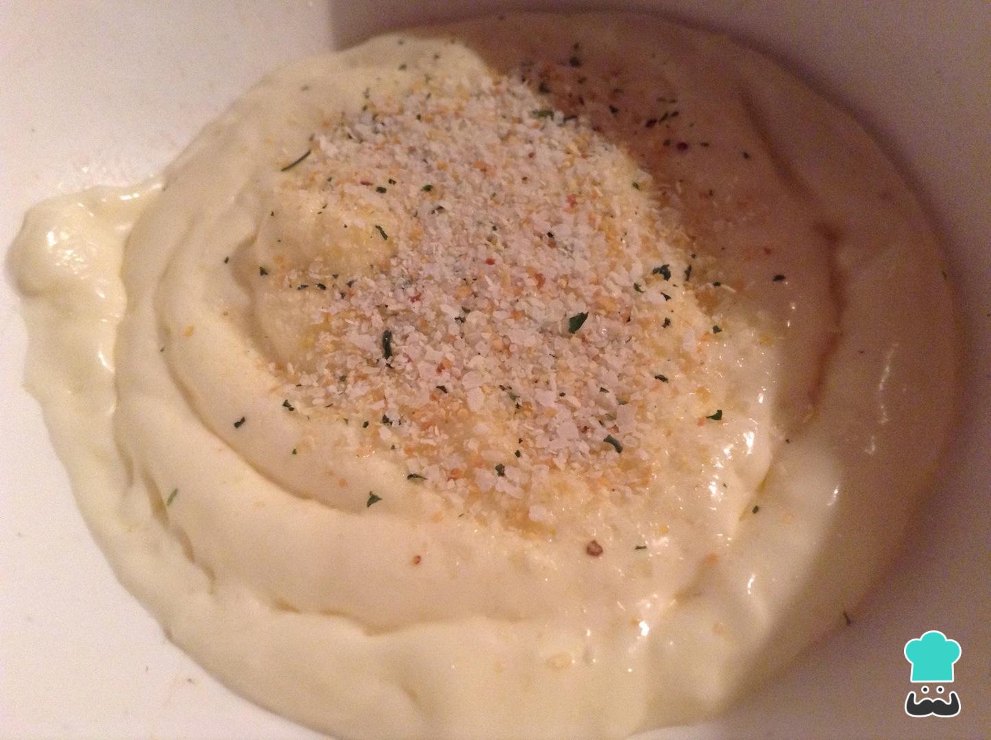 Num recipiente à parte prepare o molho das batatas fritas do Outback: misture o creme de leite com o sal de alho, o sal de cebola, sal comum e pimenta a gosto.