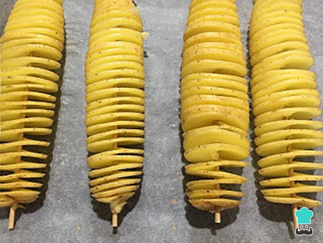 Dica: Outra opção menos calórica é fazer a batata espiral no forno. Para isso preaqueça o forno nos 200ºC e asse a batata por aproximadamente 20 minutos.