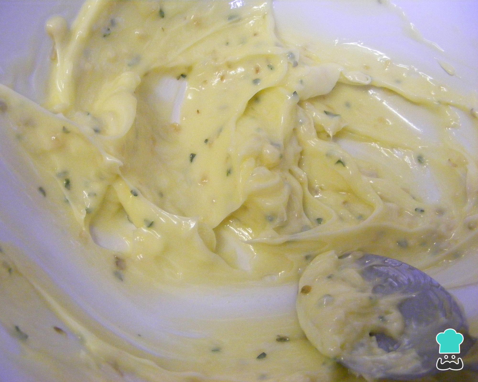 Misture um pouco de manteiga derretida com um pouco da pasta de alho (aproximadamente 1 colher de sopa). Se quiser coloque também um pouco de ervas aromáticas, como salsinha picada ou cebolinha. Reserve essa manteiga de alho e pré aqueça o forno a 200ºC.