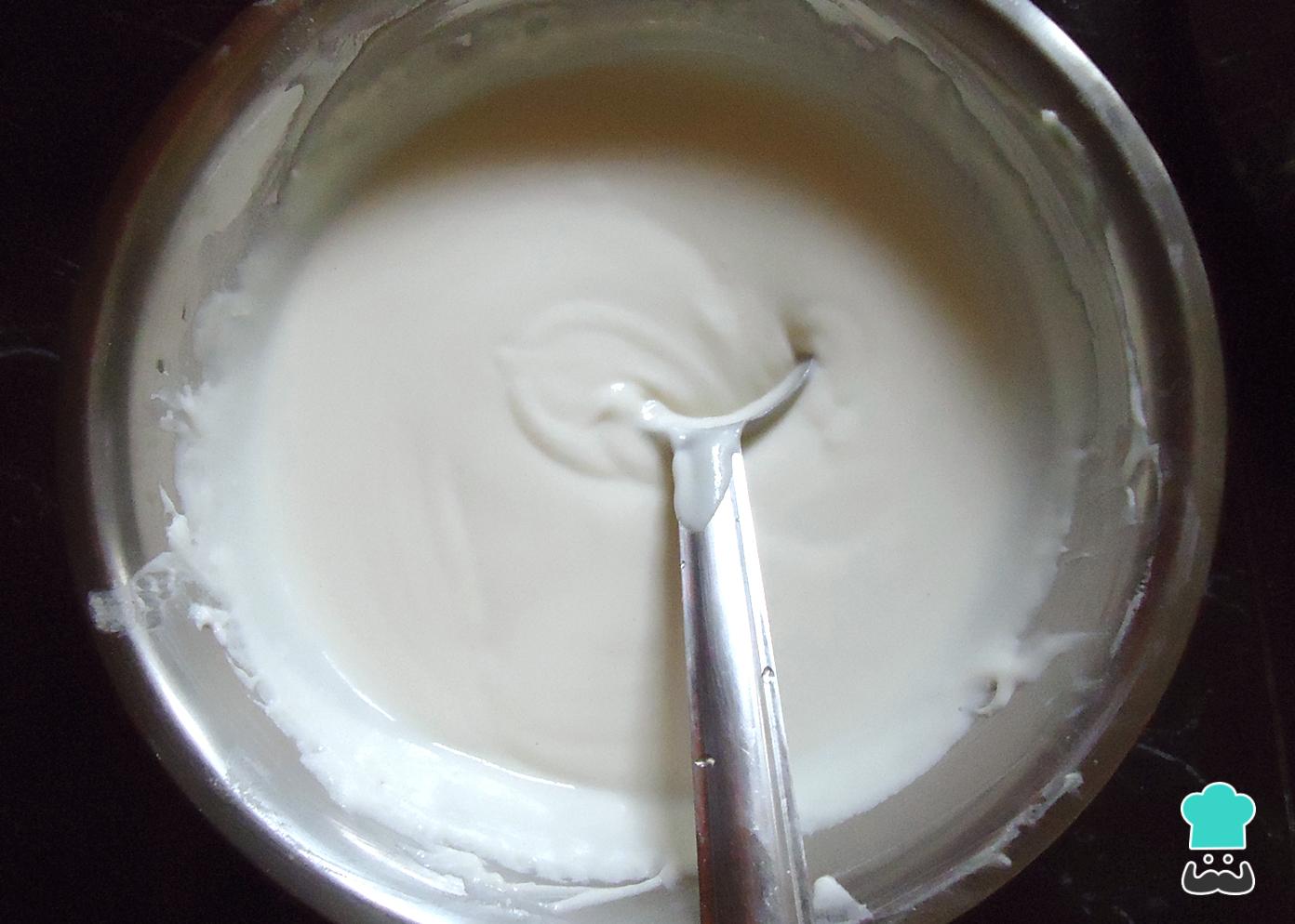 Prepare o creme para deixar essa receita de batata gratinada com creme de leite e queijo ainda mais gostosa. Para isso você deve misturar o creme de leite com sal e pimenta-do-reino a gosto.