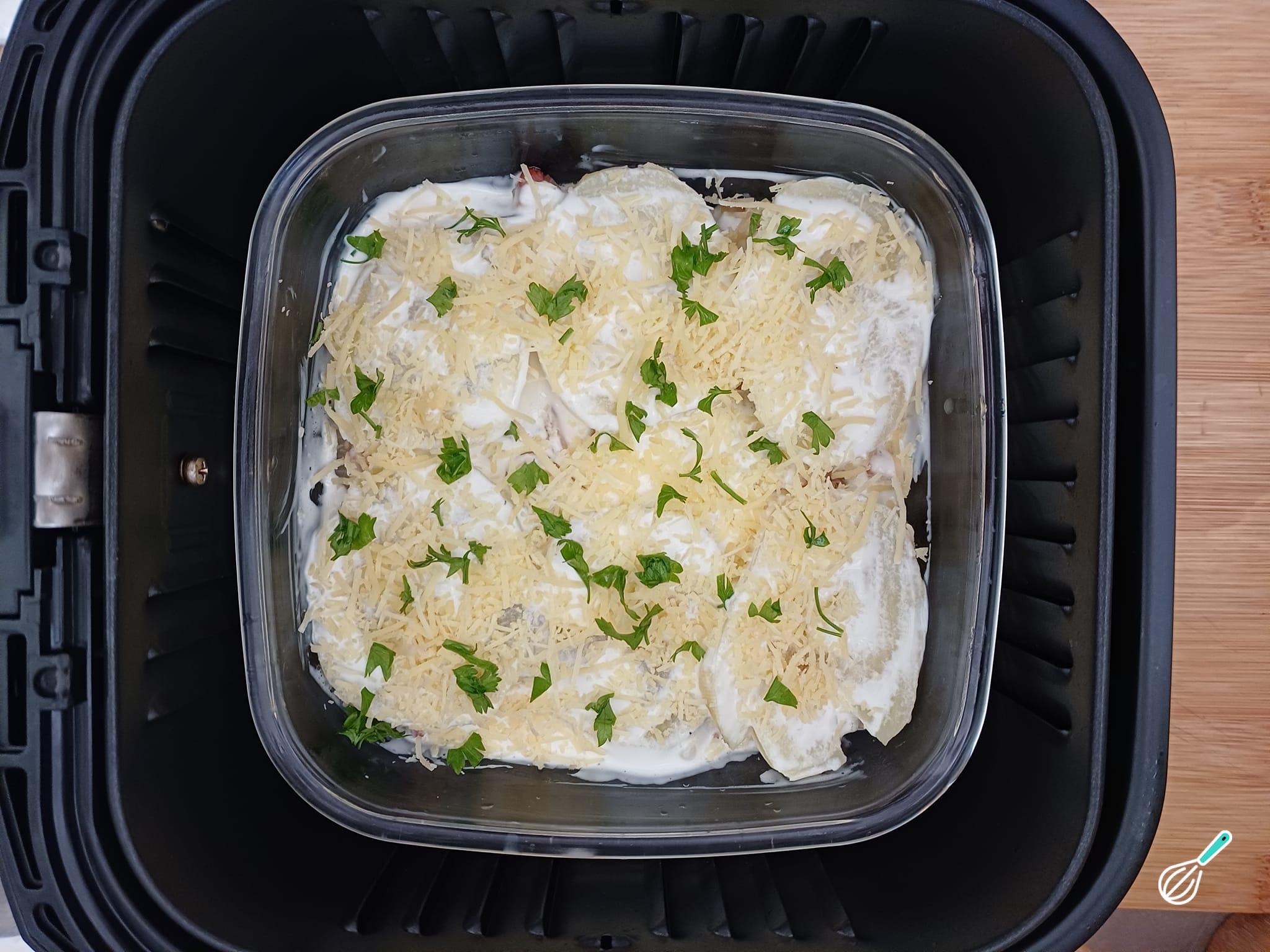 Pronto! Sua batata gratinada na airfryer está pronta para ser servida!