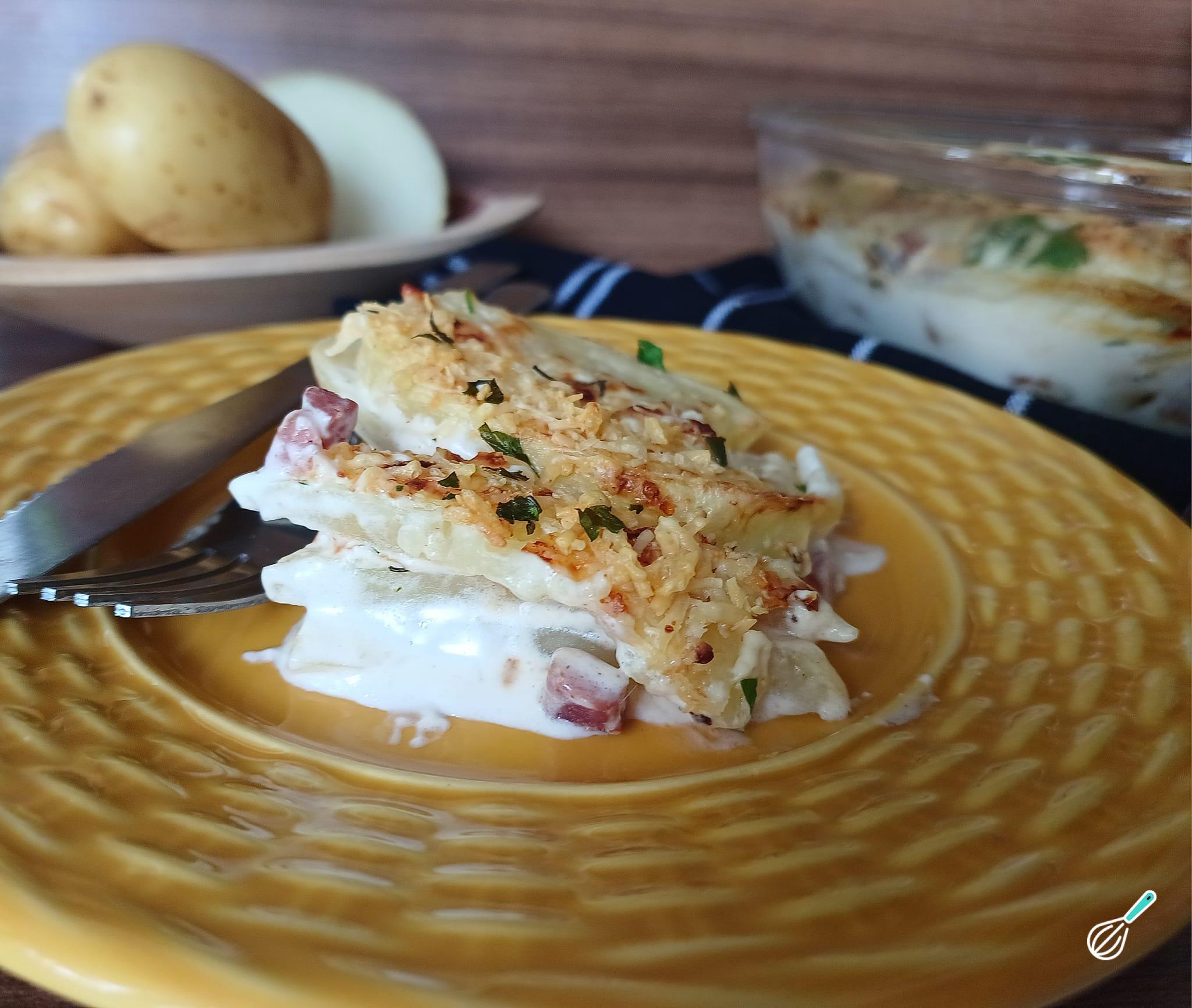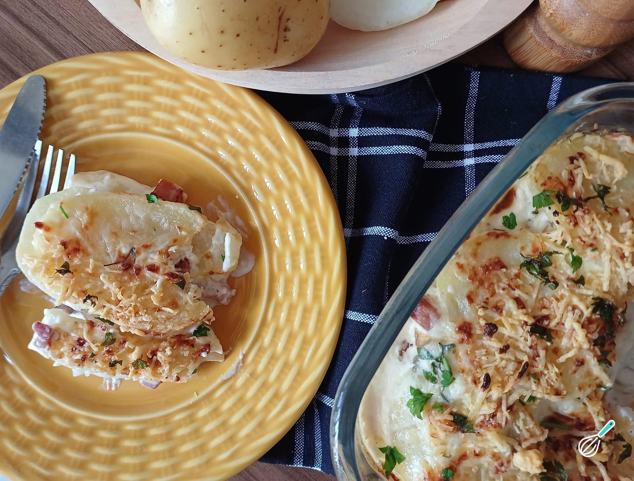 E claro que os pratos feitos com batatas, são os queridinhos! Por essa razão, vamos apresentar para você aqui no TudoReceitas essa deliciosa e prática batata gratinada que ganhou um sabor ainda mais especial com o bacon e um creme super fácil de fazer!