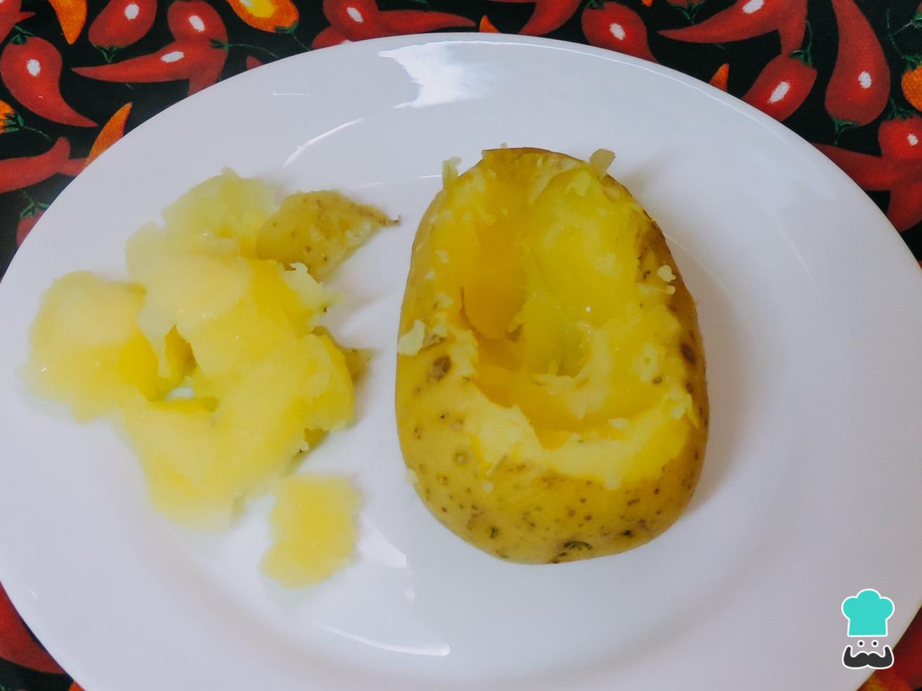 Dica: Outra opção é picar a batata com um garfo e cozinhar no microondas em potência máxima por 15 minutos.